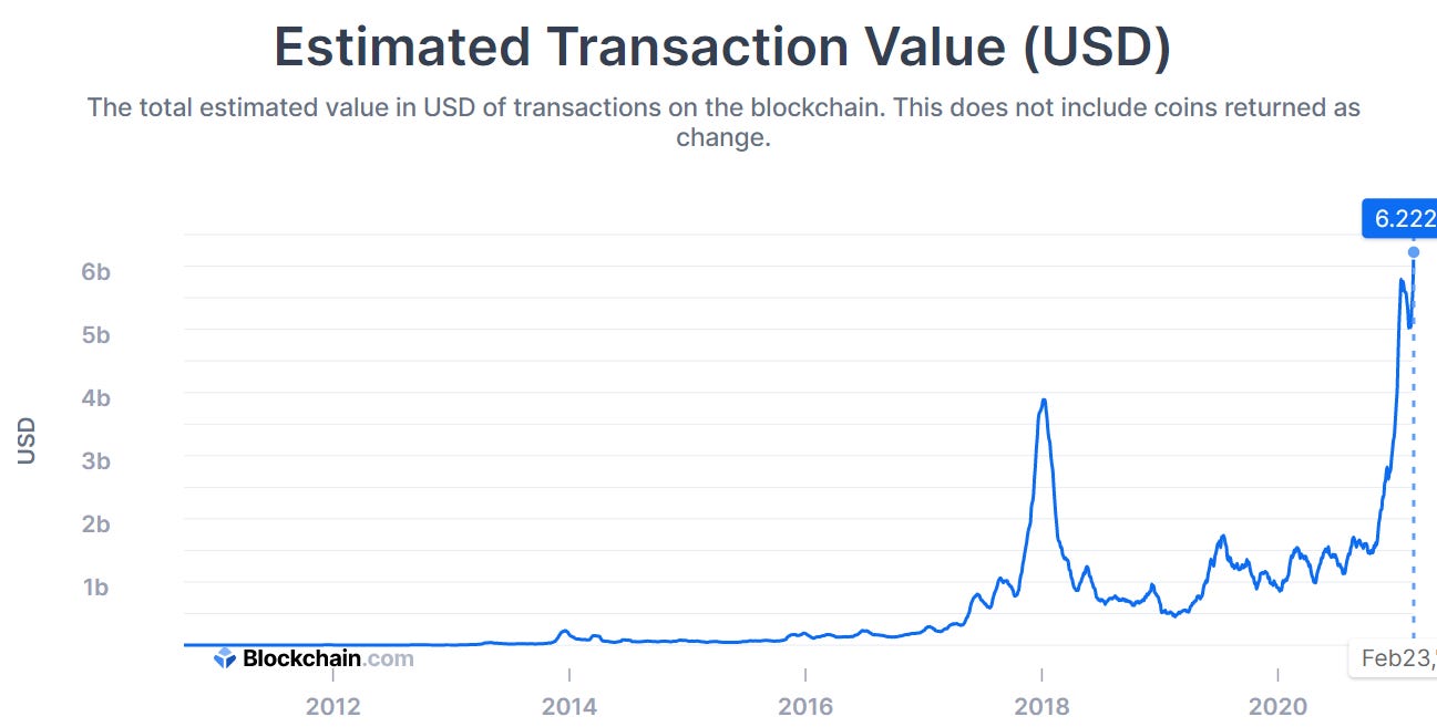 Looking at bitcoin its market cap is $937 billion as I type and its 30-day average transaction value is currently sitting at about $6.2 billion or a ratio of 151.