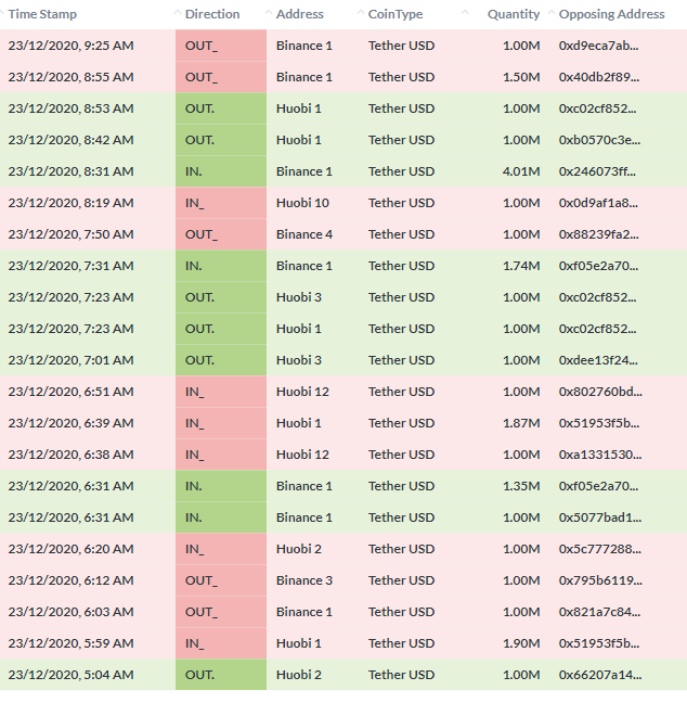 The red-colored transactions in the picture above are linked to wallets that indicate bearish activity while the green can be interpreted as bullish.
