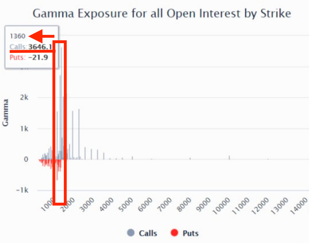 The $1,360 strike and the one just less than it for ETH were deemed to have the highest risk. Which means as price approached these strikes, the entities needing to adjust their portfolios ended up driving the price higher.