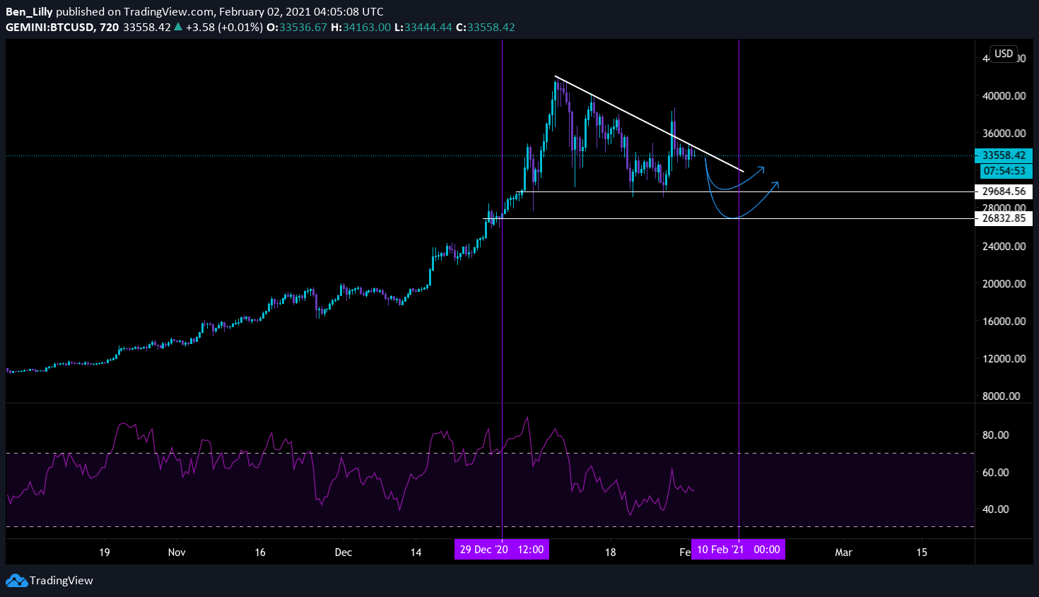 That's why our near term view is bearish. Which lines up with the DXY potentially breaking higher. If this does unfold and we sweep below the triangle formation we expect Grayscale spot buying to kick in just as price start to build momentum for the new low.