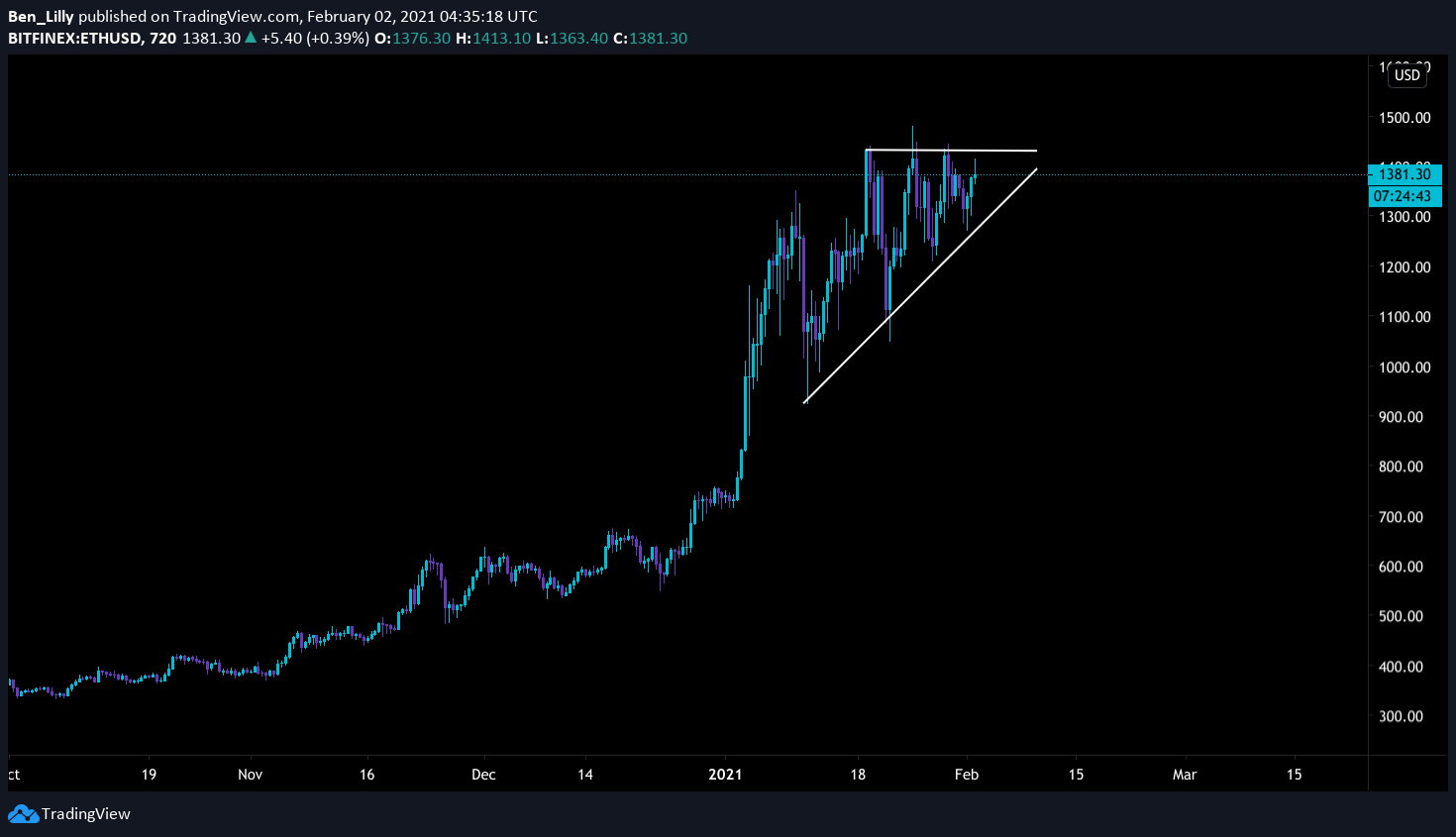 We recently tested the previous all time high. The current market cap is down about $100 billion from that figure, but what I like about this chart is the two weekly candles that came after the rejection of the all-time high... they are both bullish. Meaning price is still forming higher closes each week. If this chart retests the all-time high, don't be surprised if the market goes ballistic.