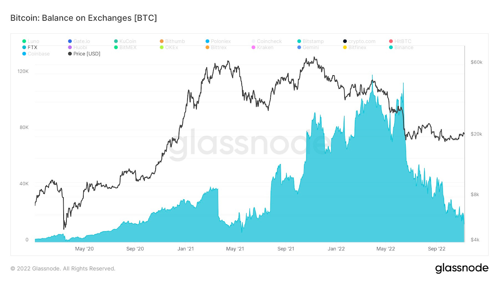The next chart below shows how FTX’s total BTC holdings had been sharply declining since the Luna collapse of this past spring. Which is when Alameda was alleged to have become insolvent and received loans from FTX.