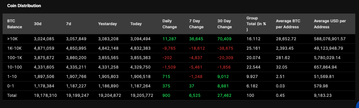 These trend numbers are staggering. Over the past 30 days, megawhales have absorbed the selling of all other holding classes, and net accumulated over 70,000 BTC, with extreme upticks happening over the past week.