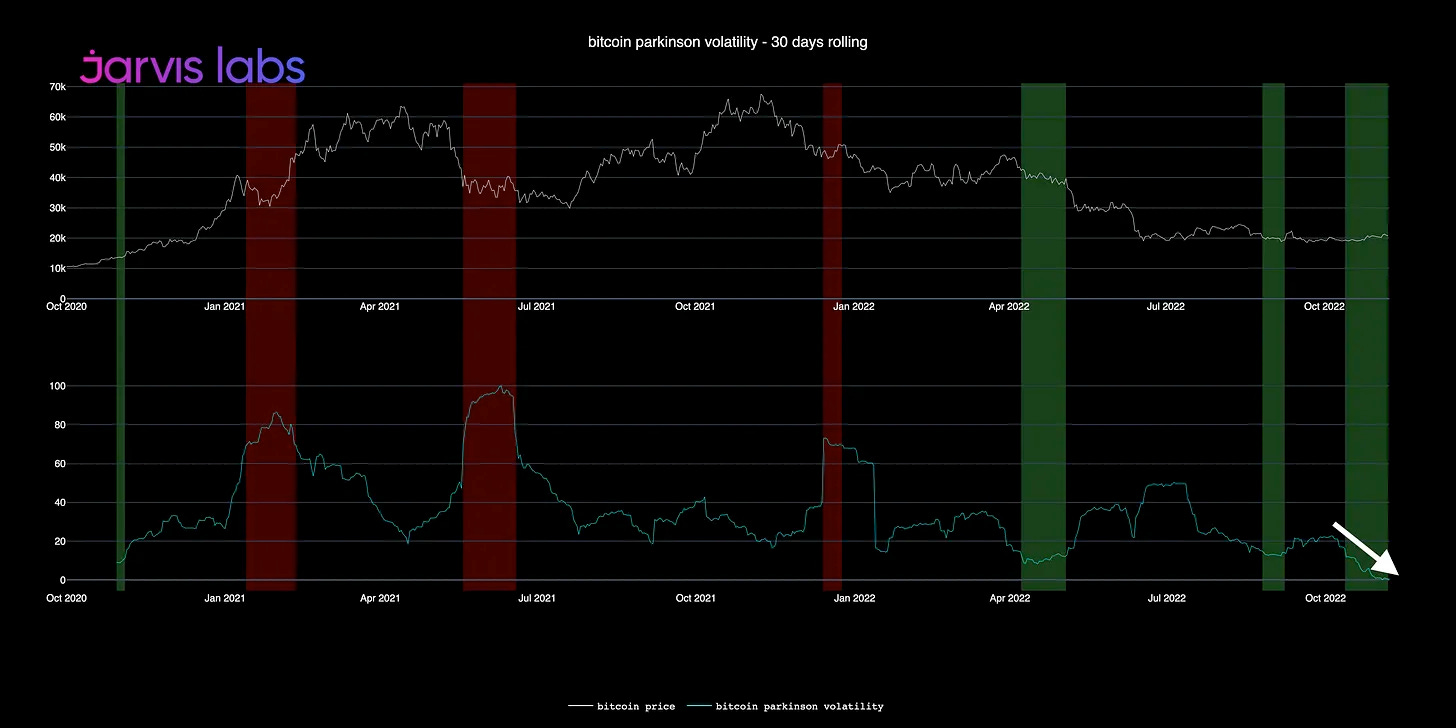 If you remember, back in September we broke down the Parkinson volatility indicator (shown in the chart below). It helps us see when major market movements are imminent.