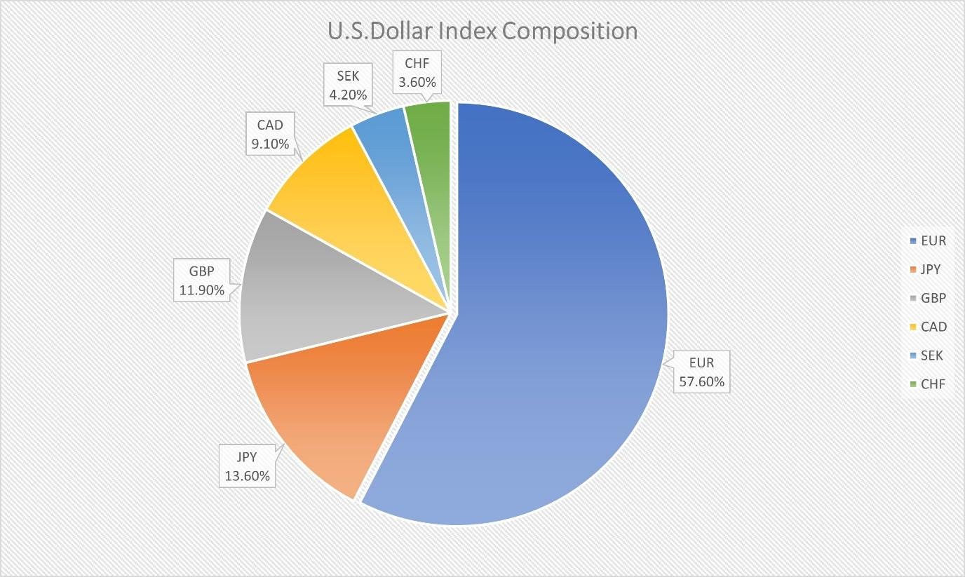 Let’s peel back the layers on DXY to get a better understanding of what it is and how it works before we explain why the world’s economy succumbs to King Dollar’s influence.
