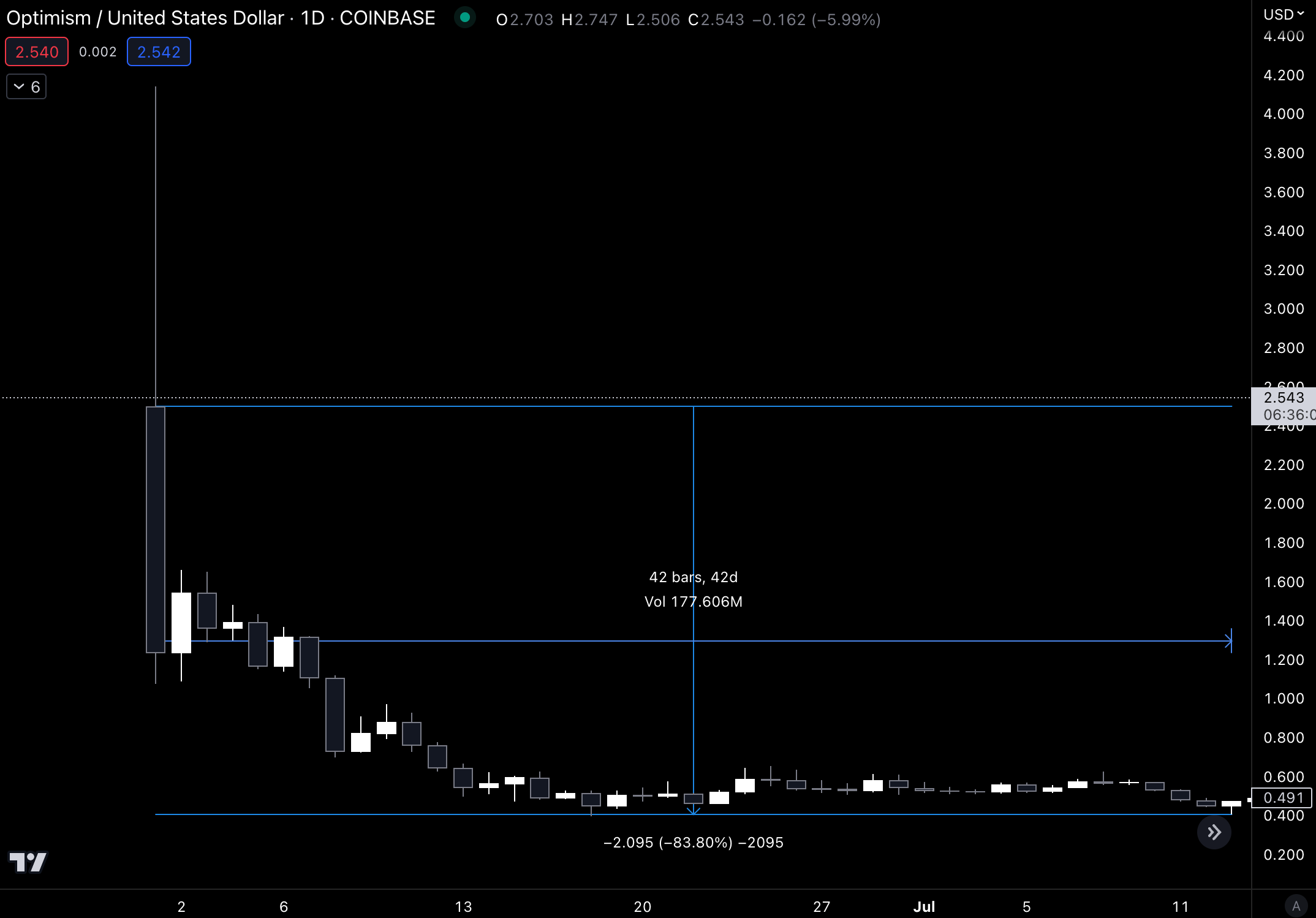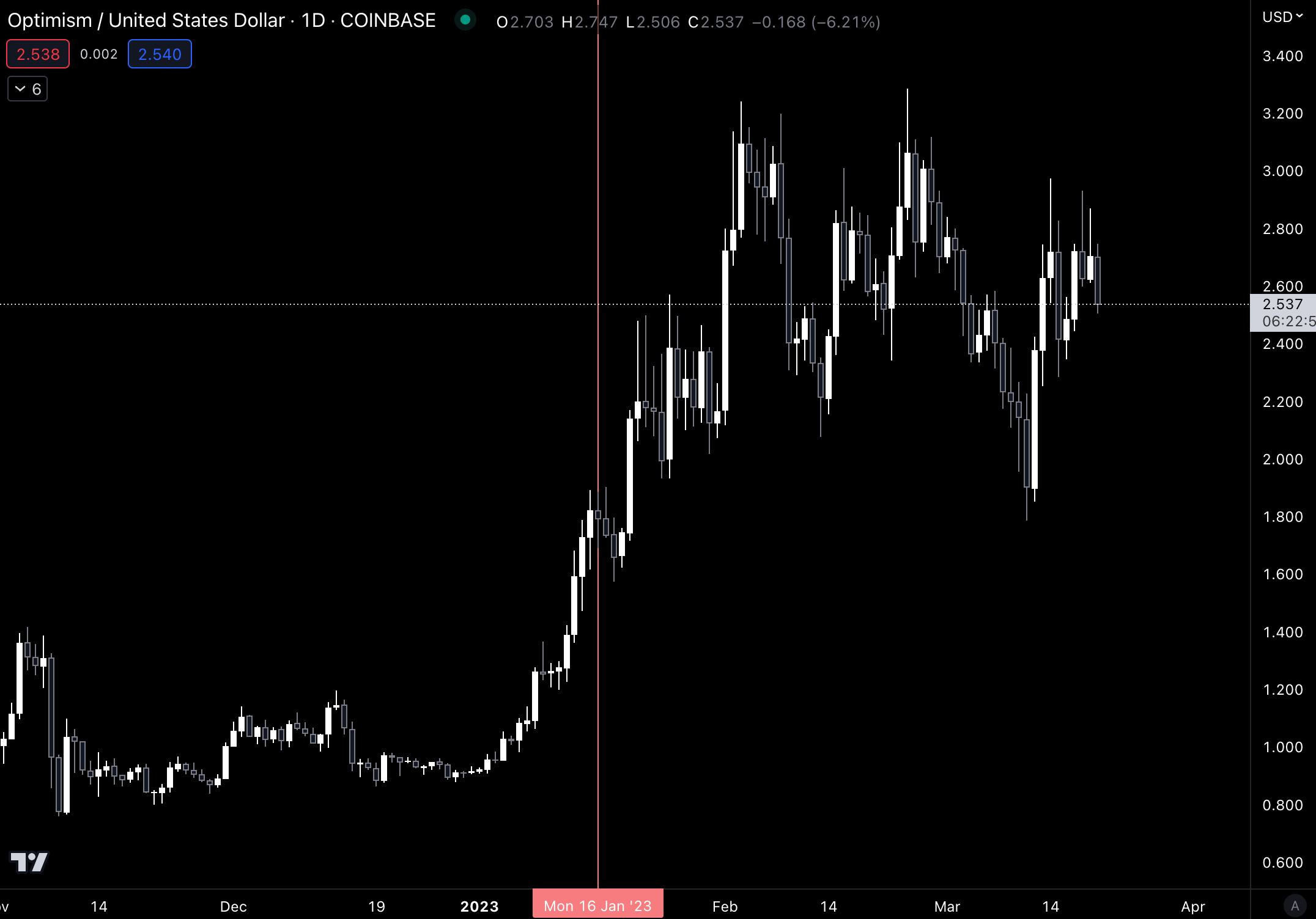 To better understand, let’s look at the price action of OP.