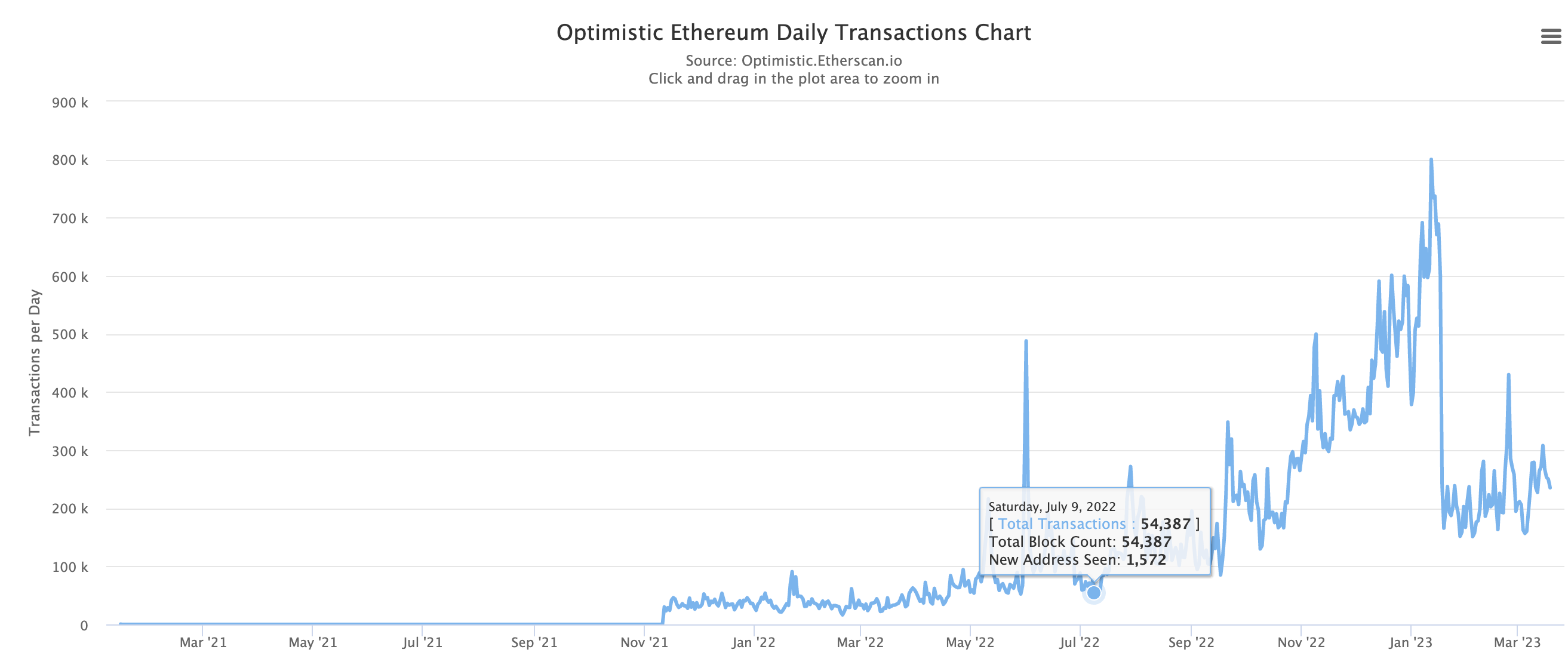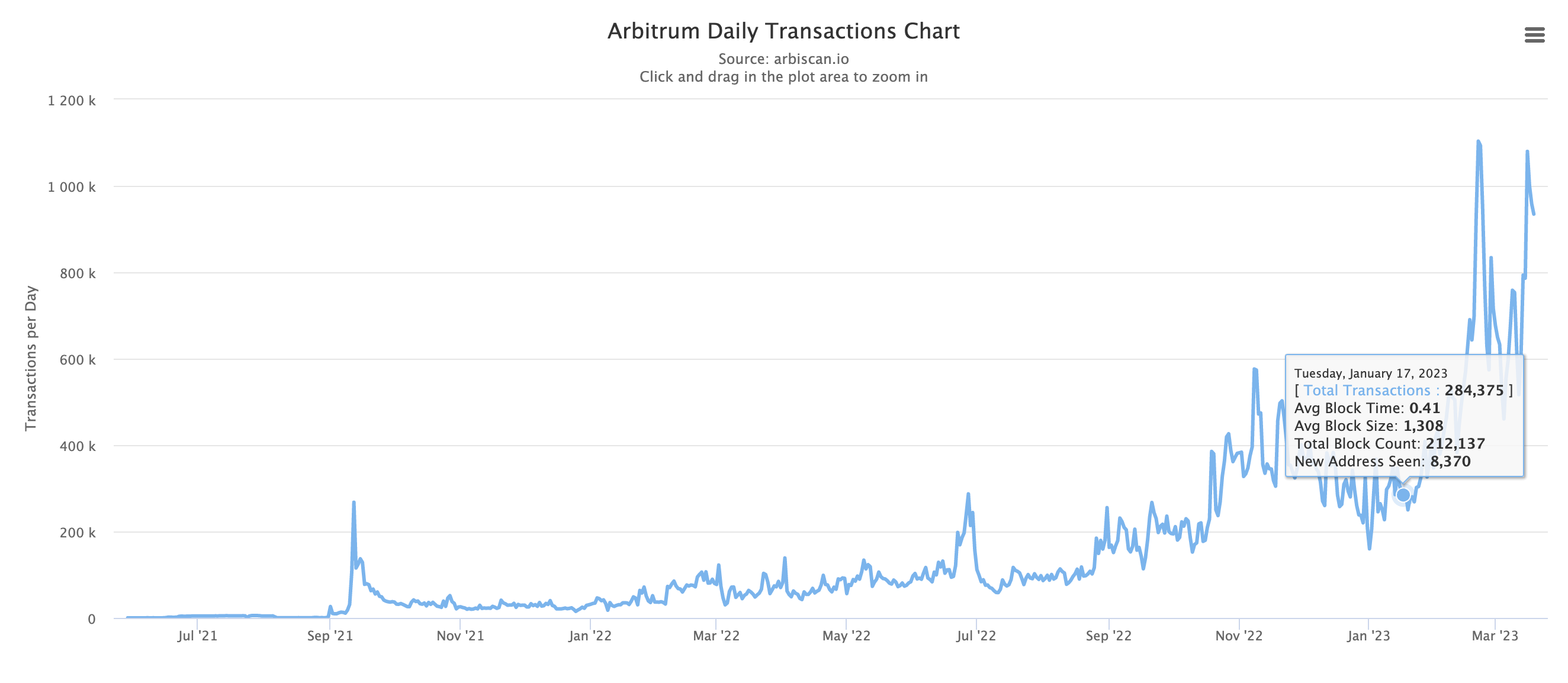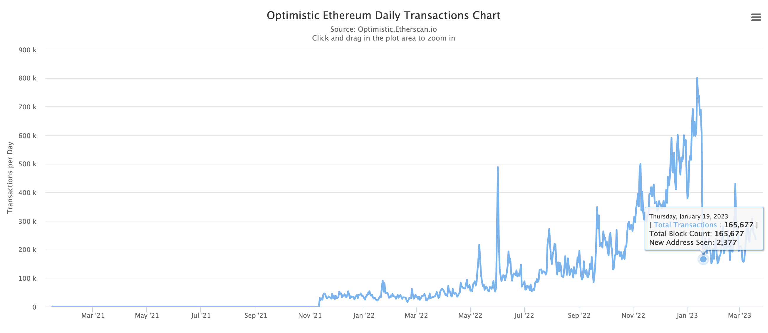 Looking at Arbitrum’s activity, it seems when Optimism’s transaction activity died, they headed over to Arbitrum. Check the chart below, and you can see the spike that took place just after this January date.