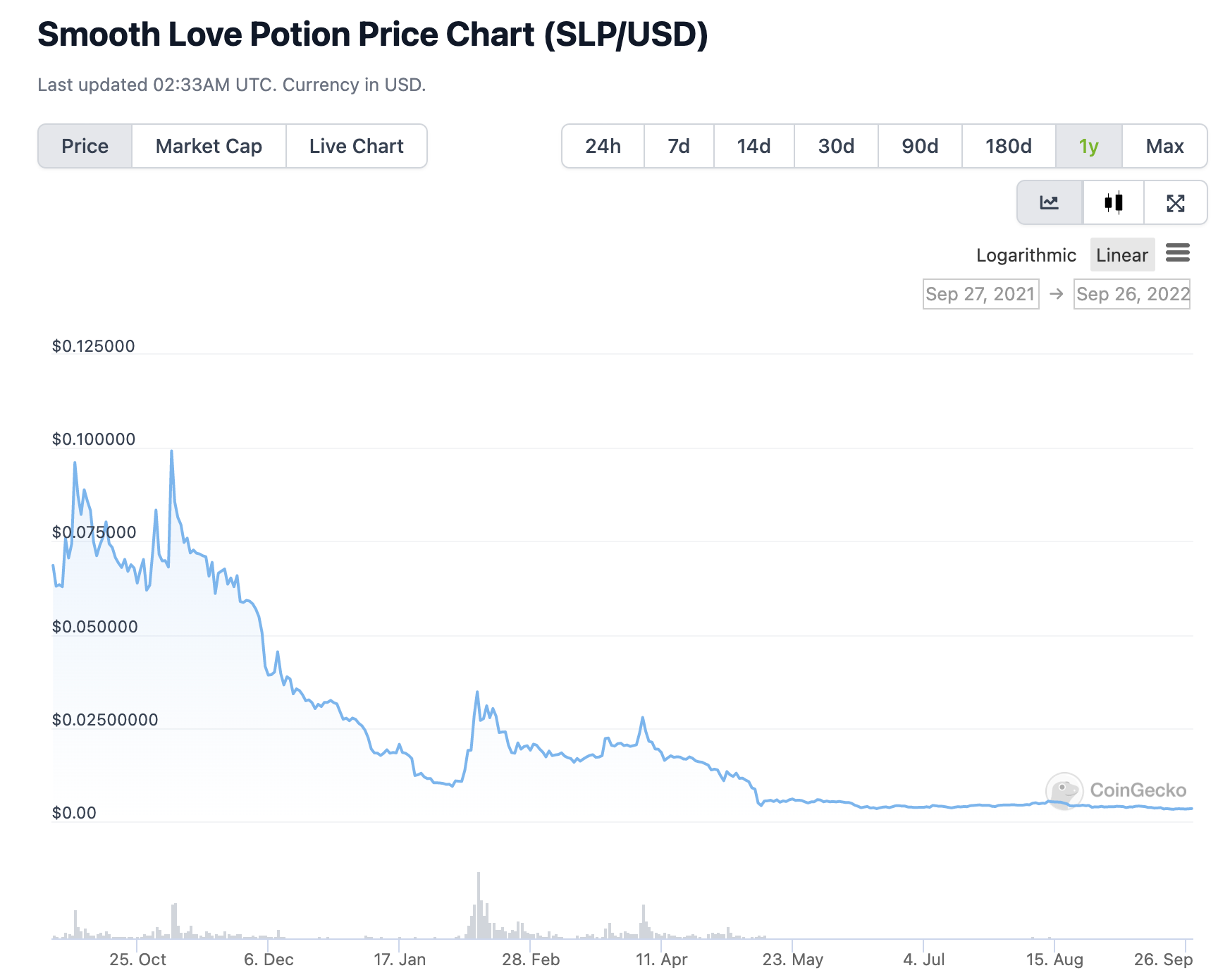 SLP is the in-game currency of the Axie universe. Players can earn SLP through gameplay and contributions to the ecosystem. They can in turn use it to breed more Axies.
