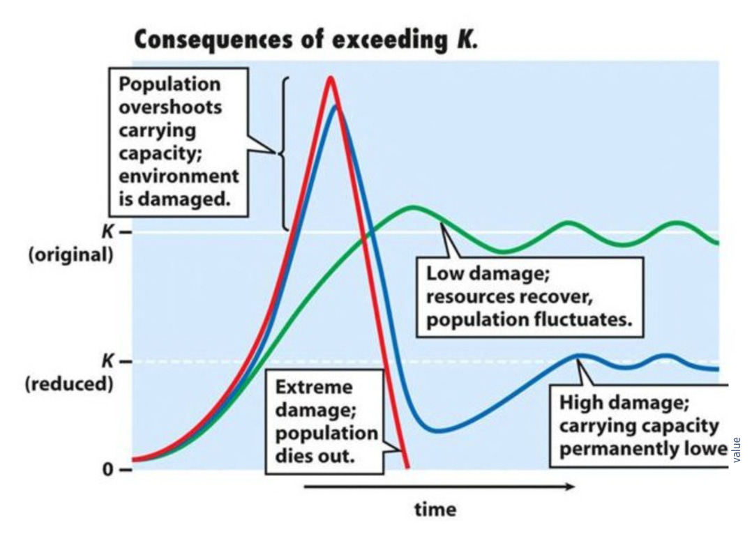 To visualize this, here is the chart we show clients on this topic. Many of us might remember this chart from biology class in discussing Reindeer on St. Matthews Island that died off.