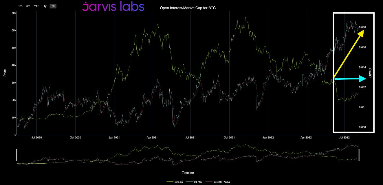 Since then there’s been a drastic shift where OI went to 1.9% while BTC’s price has dropped by over 50%.