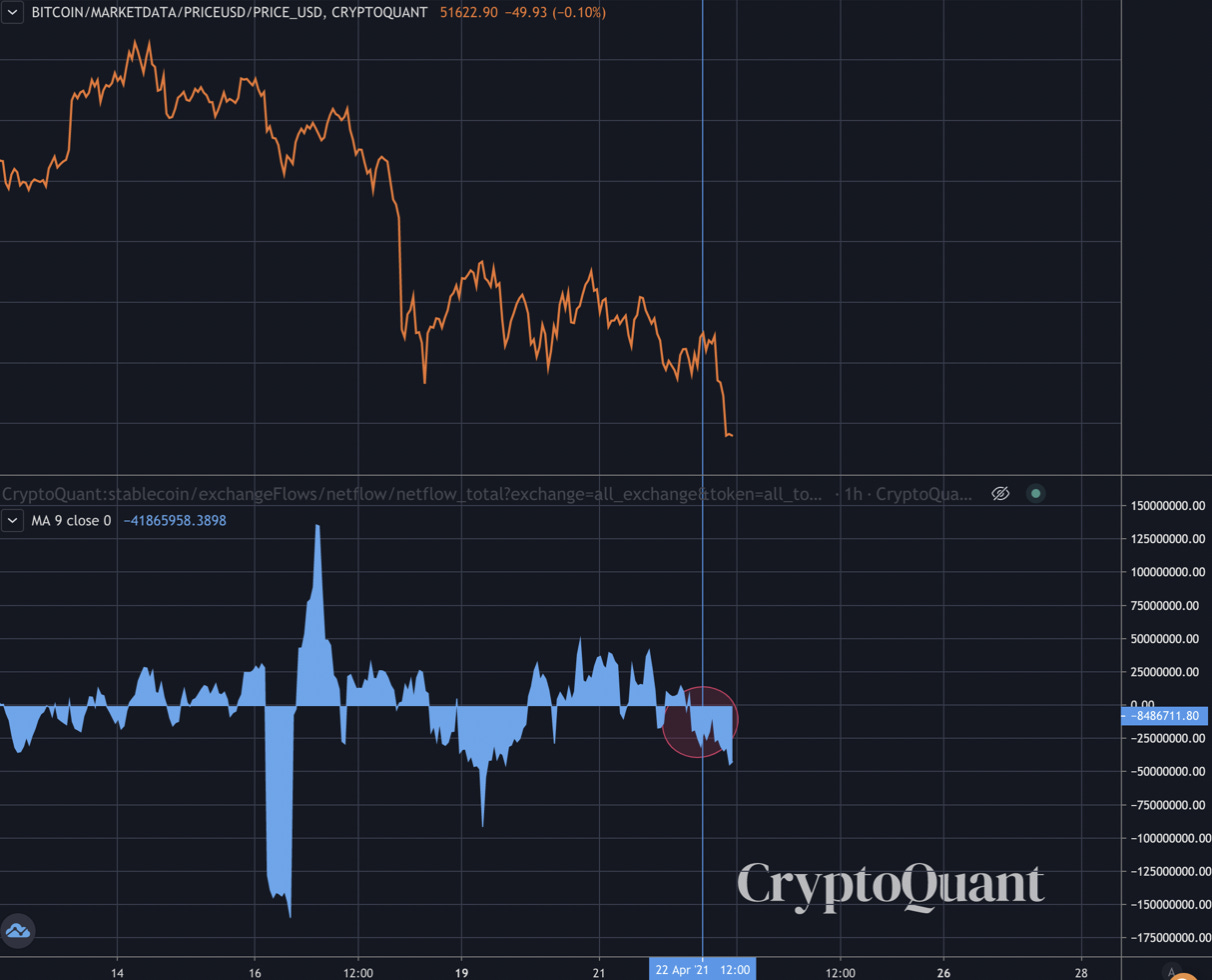 Stablecoins flipped bearish as well slightly before the selloff.
