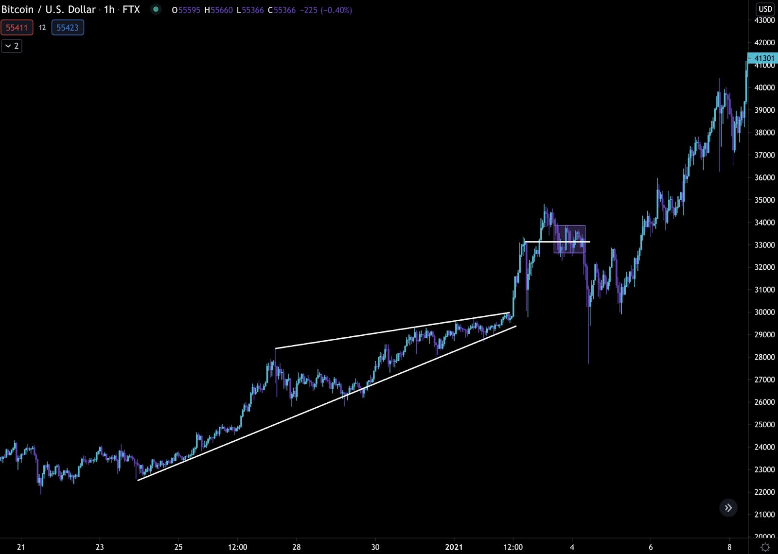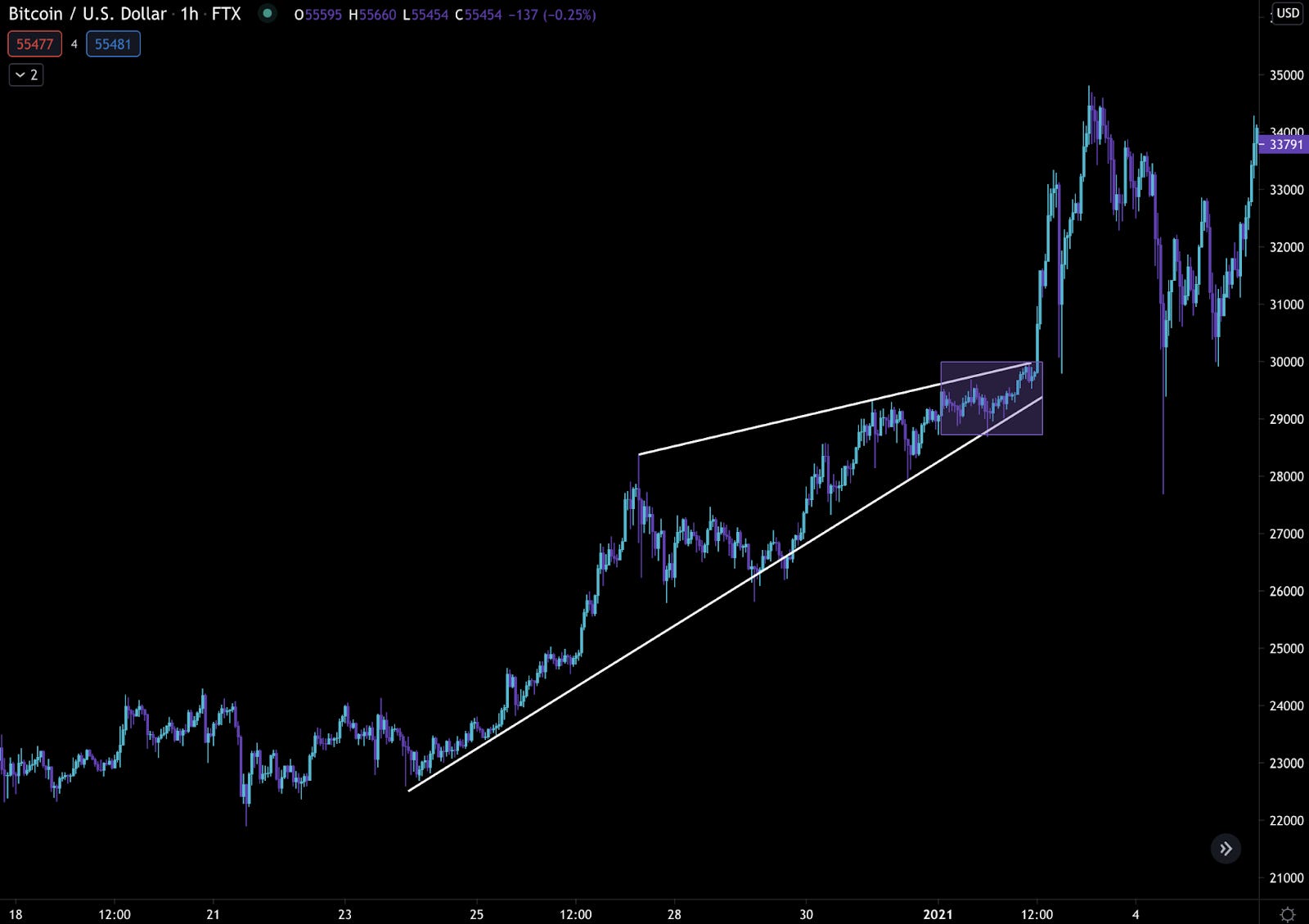 So to start, let’s look when price broke out above 30k. You might remember price was moving faster than just about anybody could keep up with.