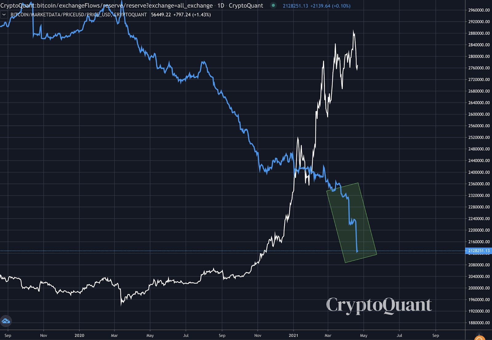 If we back up a bit and see what these netflows are doing in terms of exchange reserves. Reserves are going vertical…