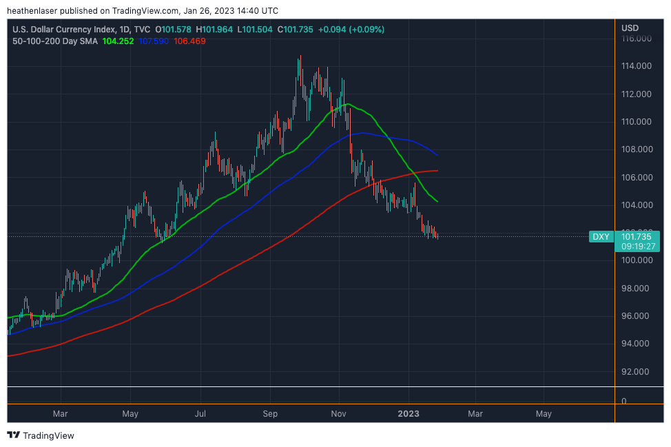 Another catalyst to be mindful of is that the U.S. Dollar Index (DXY) appears overdue to backtest some of the moving averages it lost late last year, as you can see in the chart below.