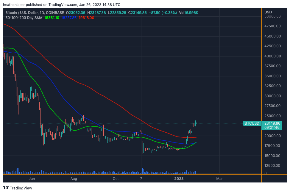 This could come soon while BTC is still, in the $23,000 price range, or it might come later after a visit closer to $30,000.