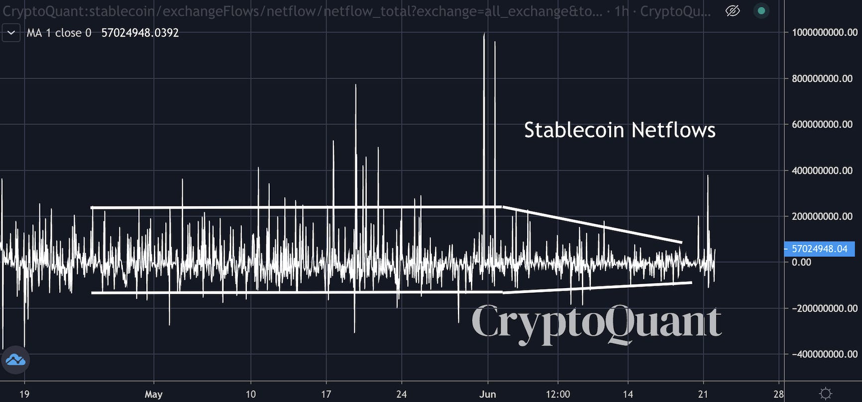 The flip side of this is in order break up and out of this range we need an uptick in flows. If we don’t, then we are at risk of losing $30k.