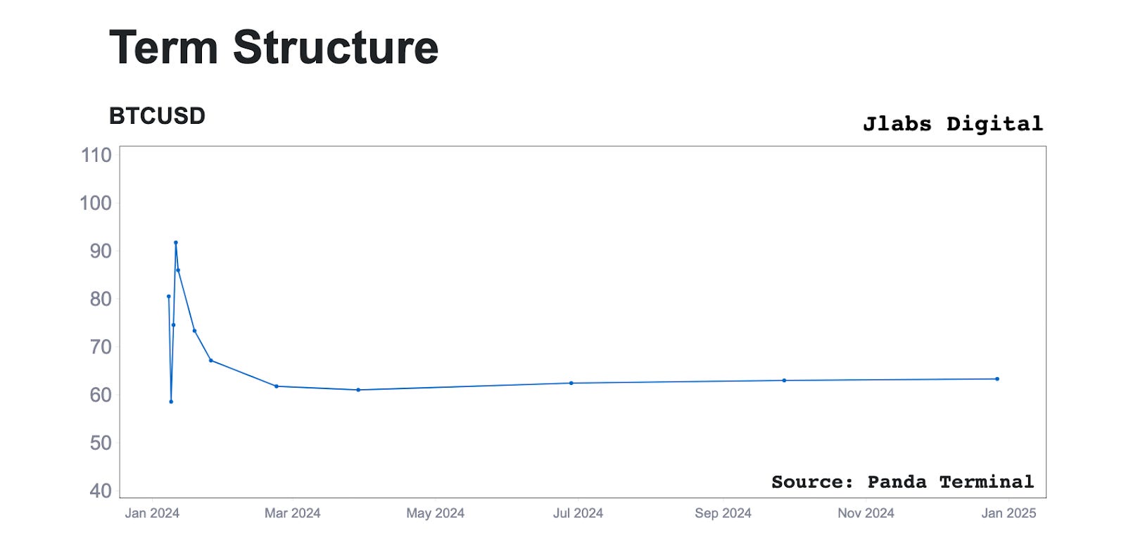 This transition from a negative sloping curve in January to the positive sloping curve we see today reflects that the options market is now better prepared for future volatility into the end of Q1 and later this year, than it was at the end of 2023.