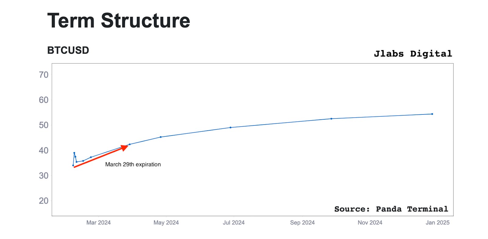 And as we look out further towards the end of 2024, the IV term structure climbs to almost 55 by December.