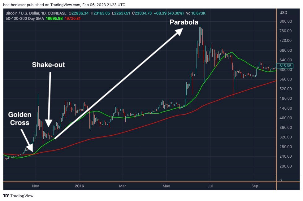 When Bitcoin’s golden cross printed at $8,000, price chopped around for over six months in a slow crawl.