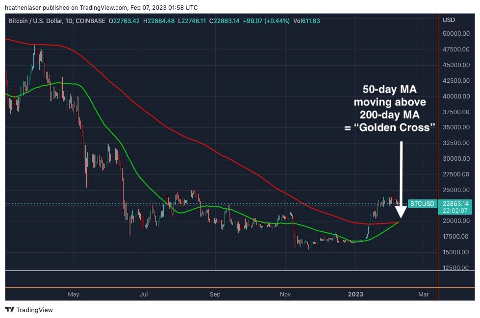 The 50-day ($19,820) has just surpassed the 200-day ($19,720), creating Bitcoin’s first “golden cross” since September 2021.