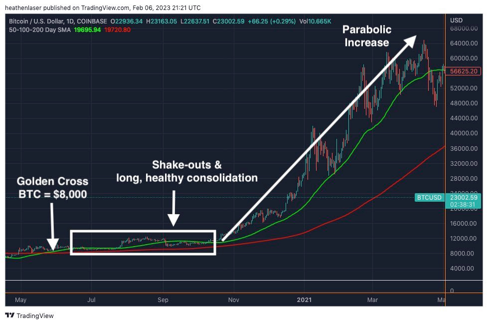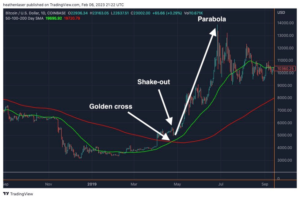 Very similar to our current market structure, Bitcoin rose from the depths of the bear market and experienced a golden cross at $6,000.