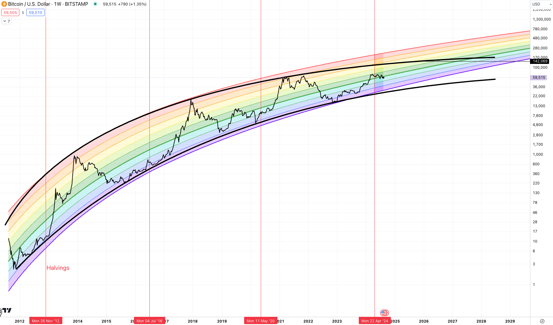 Anyways, here's the rainbow chart on my TradingView... Point being, look at the black lines. The Rainbow needs more arc.