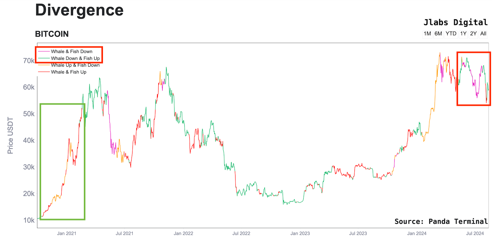 The red box below shows Whales are not accumulating. The green box is to show what strong accumulation looks like... Which is great to see when price is rallying... Or even better, just days before price rips higher out of a sideways range.
