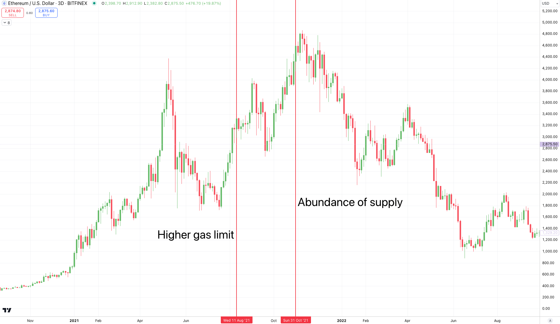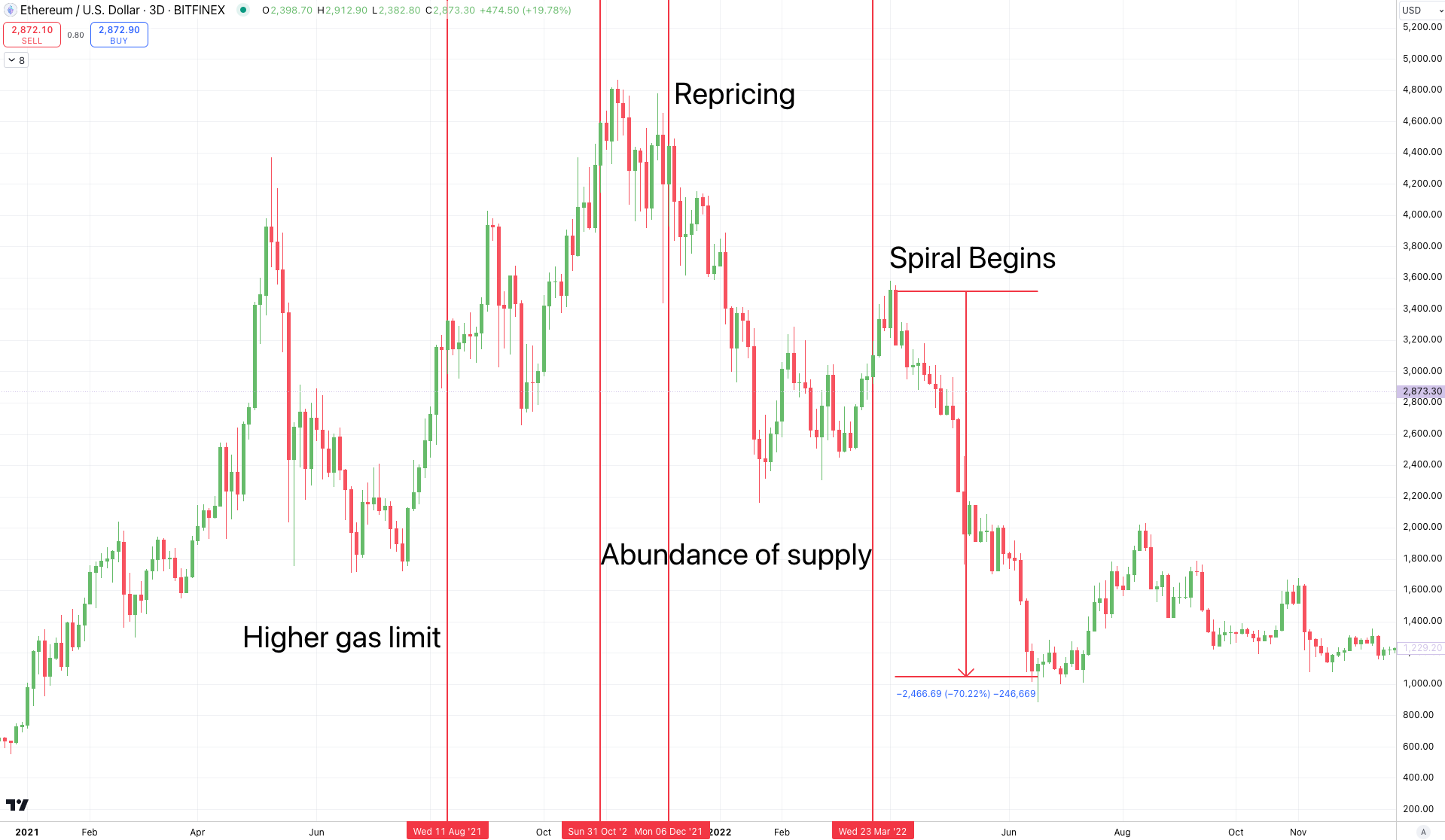 In Ethereum's case, the overabundance of supply was a major deflationary moment. And when we look to see when the market started to reprice this supply...