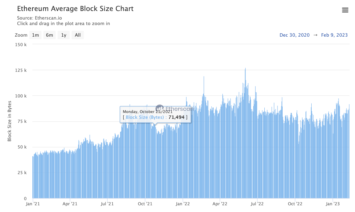 Soon after this uptick in gas limit took place, we can see that the block size rose initially as the demand that was priced out of the market was able to get soaked up.