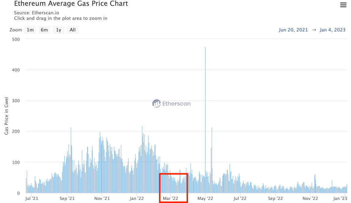 There was no drop in available block supply. And so the demand for ETH to pay for compute dropped hard as well.