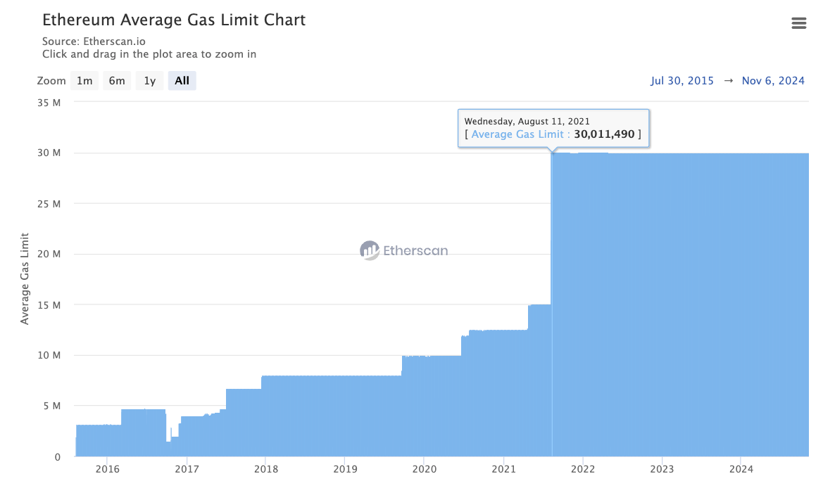 This changed the amount of available gas that the market could use in each block. Meaning a DEX swap of 100k gas took up a smaller share of the total amount of gas available in the block.