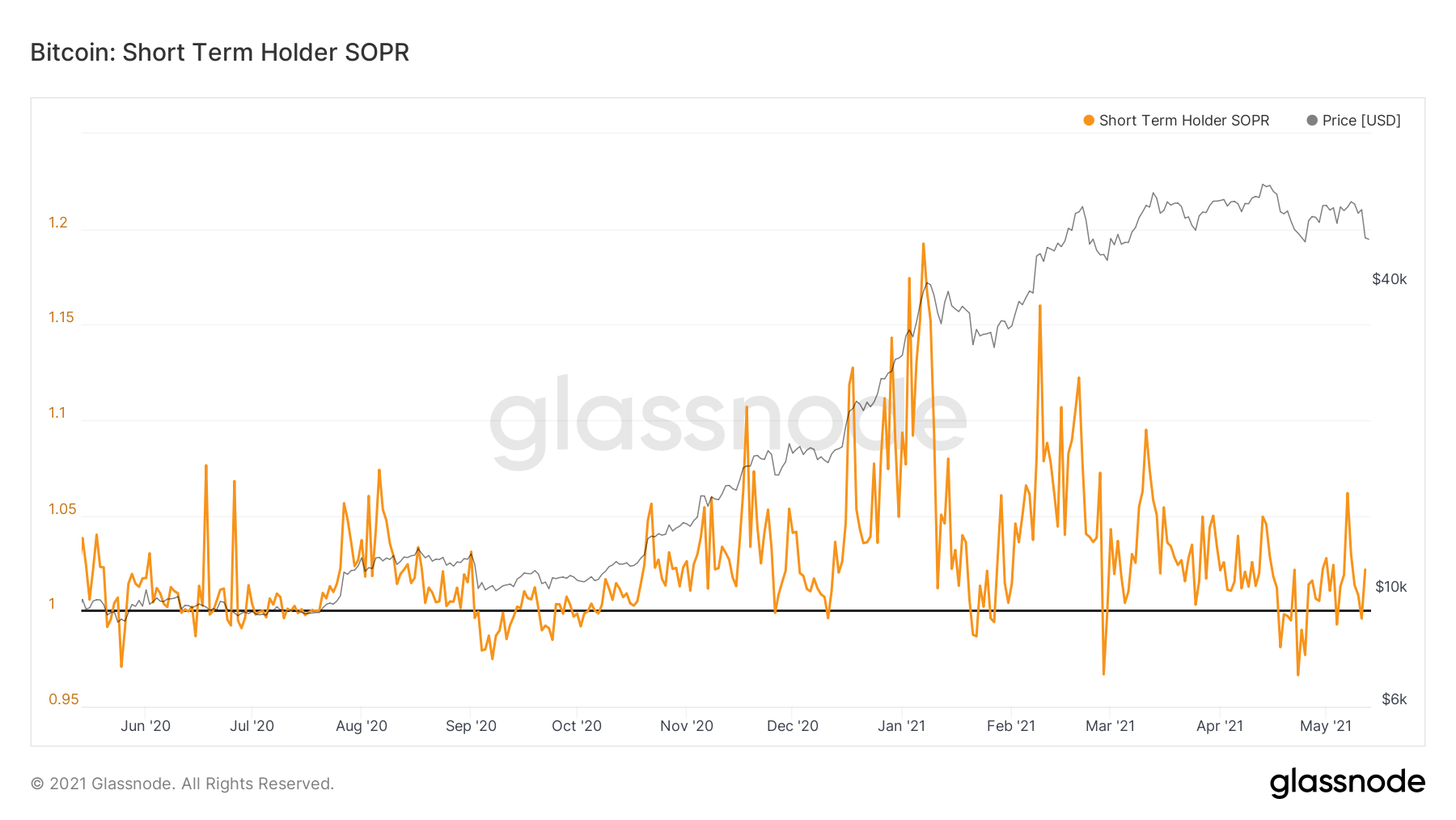 Additionally, SOPR got a reset. This indicator tells us how short-term holders are looking in terms of profit. Right now the metric is at one, which tells us we’re neutral…