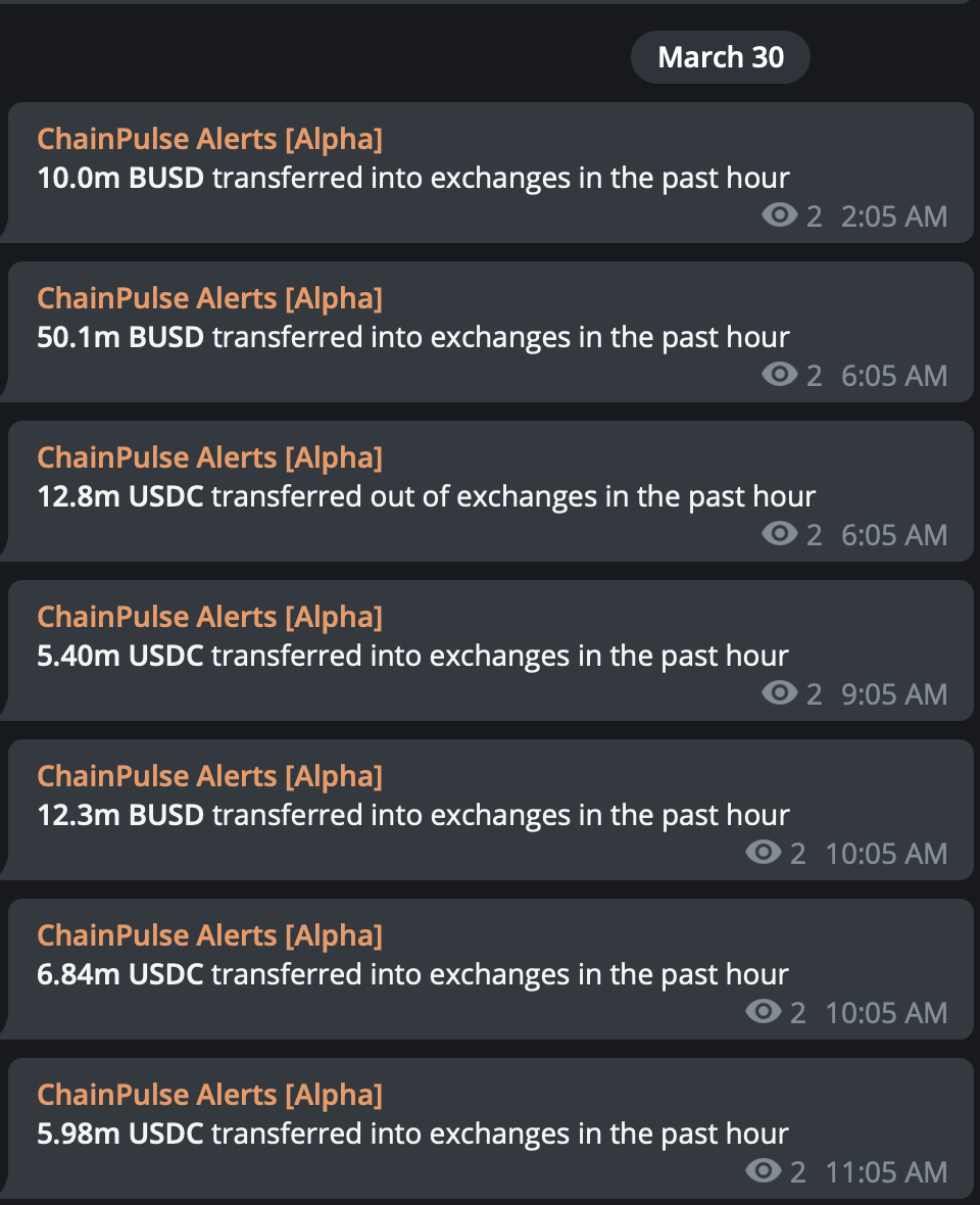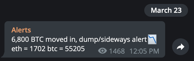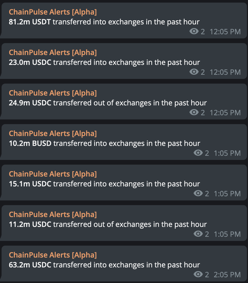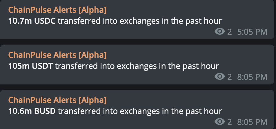 These alerts were waves of bullishness coming in through the blockchain. That’s on top of the high levels of dry powder already in the market, which we mentioned on Monday.