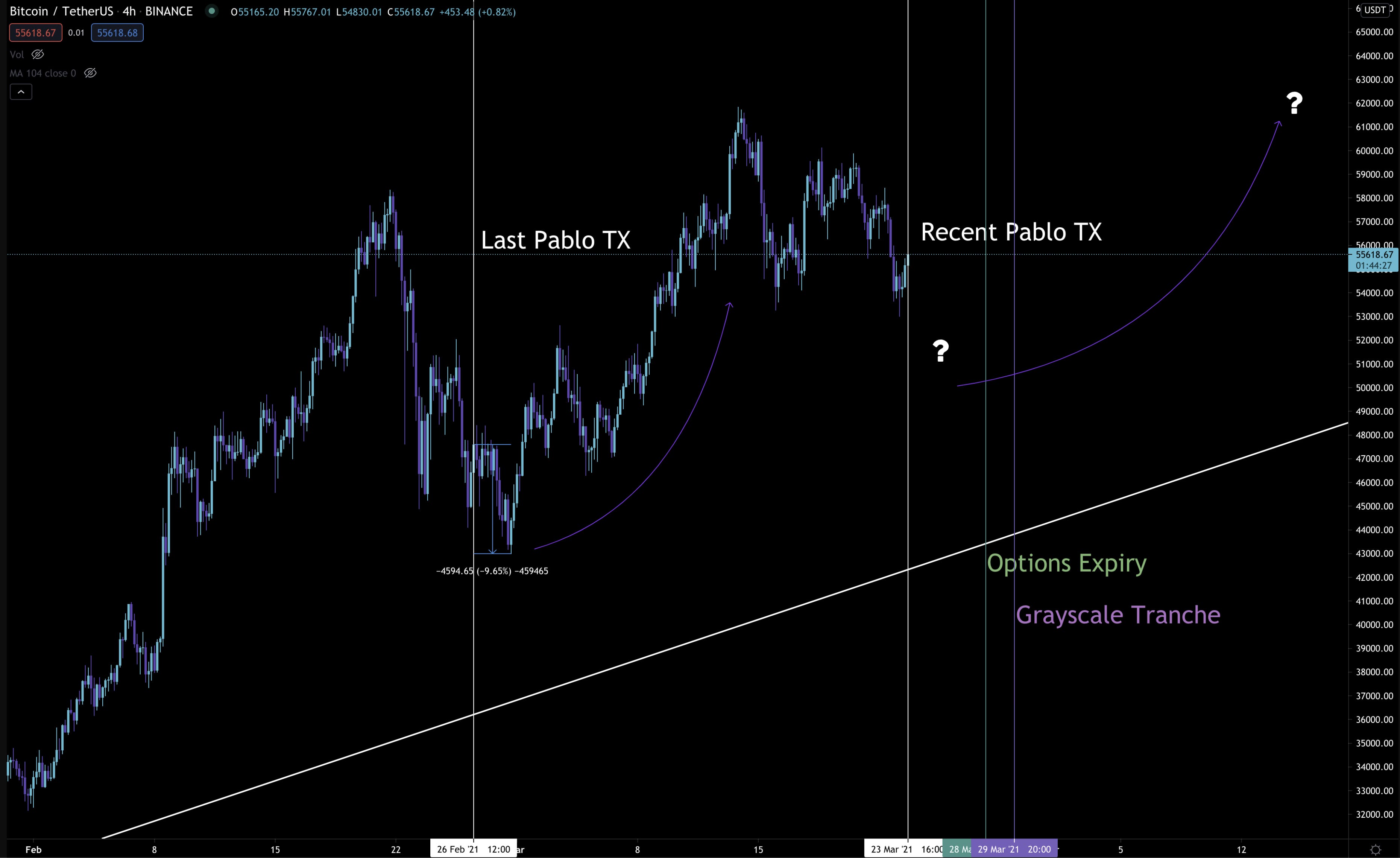 But before getting to that… Based on the strong push from $50k and from the passing expiry, bullish on-chain activity, and the end of Q1 resulting in a stack of futures rolling off the books, the long-term bullishness remains intact.