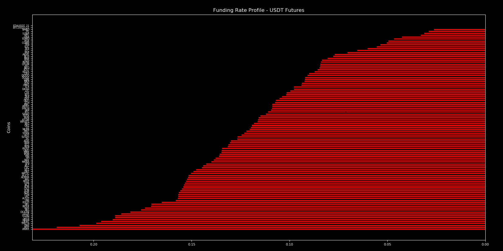 Remember, funding rates can act as an indicator that lets us know if markets are getting irrational. If red bars approach north of 0.4 then leveraged longs are paying 438% interest to keep their position open. While anything green is where short positions pay.
