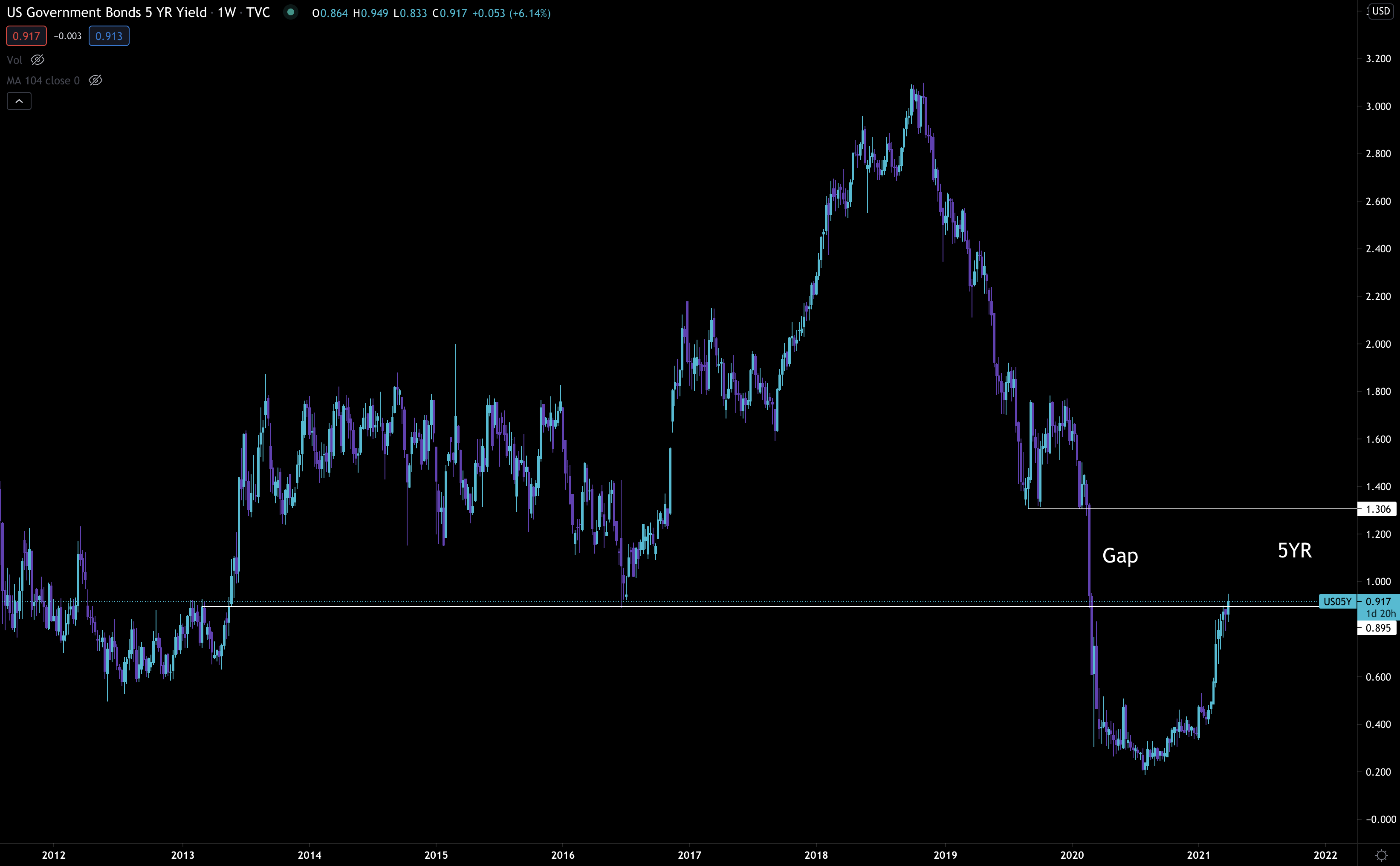 And it’s what brings us to our last chart for the day. It’s the 5yr U.S. government bond yields chart. It’s starting to make a move into the liquidity gap seen below.