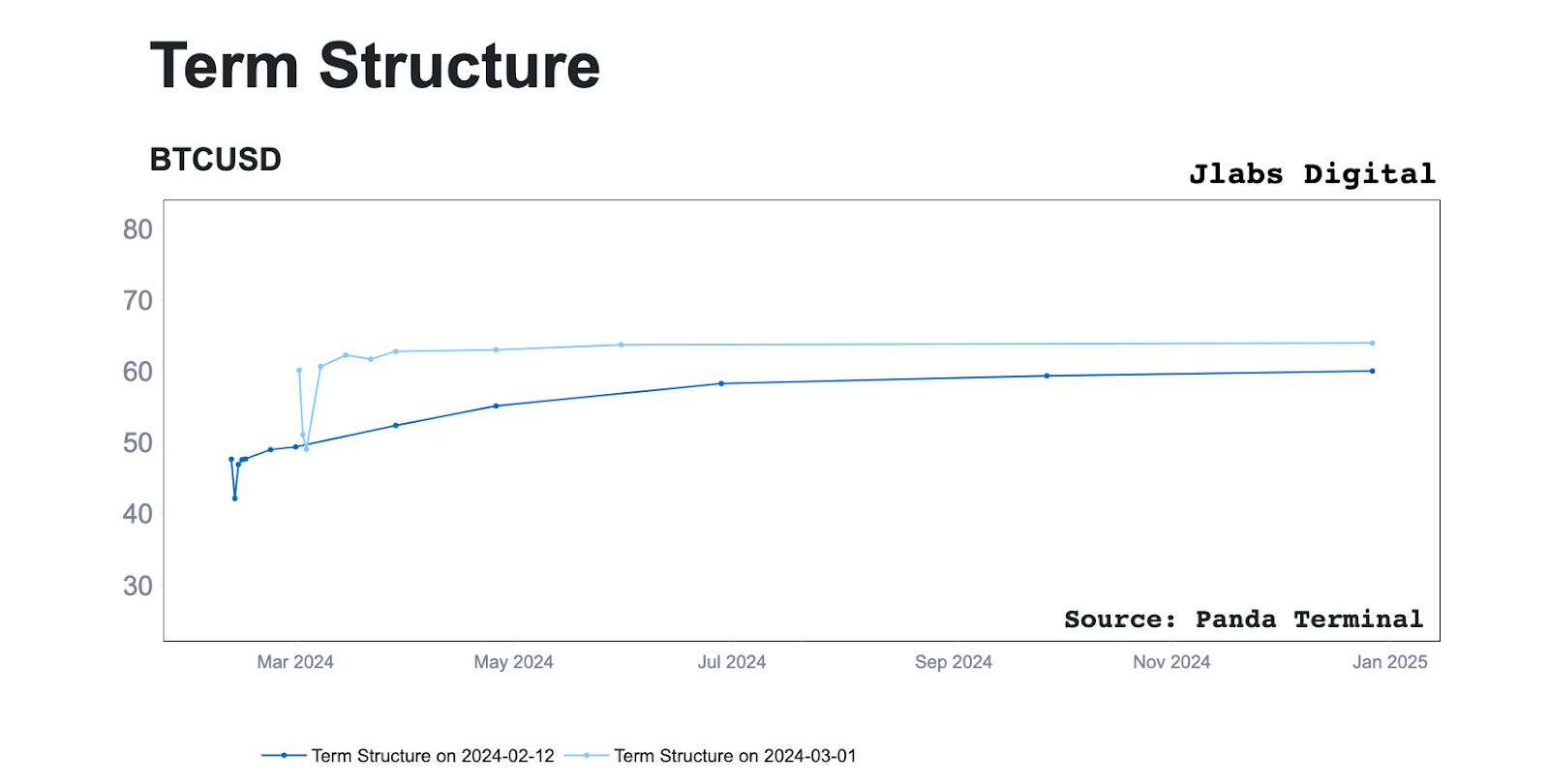 Term structure charts give us a glimpse at how much pricing for options is being impacted by implied volatility. And comparing two different structures to one another helps us identify trends.