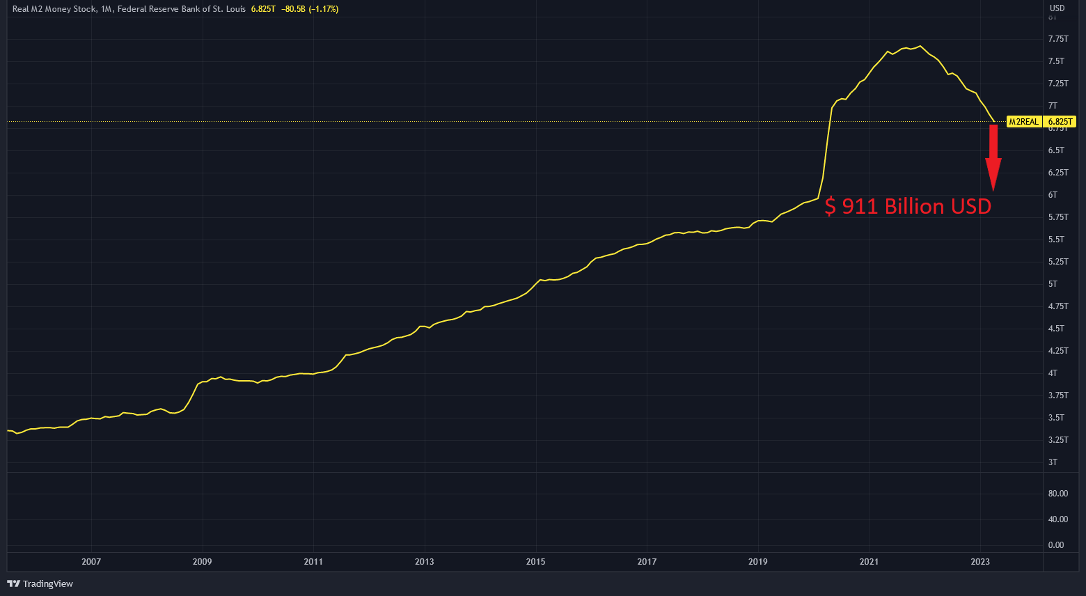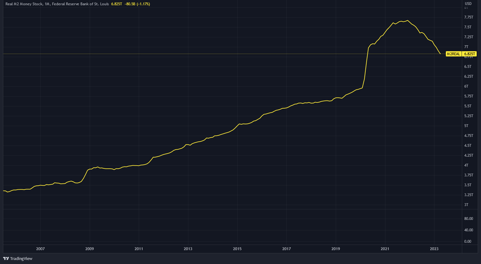 As you can see, the M2 supply has been declining since 2022, which does not provide any comfort for the economy moving forward.