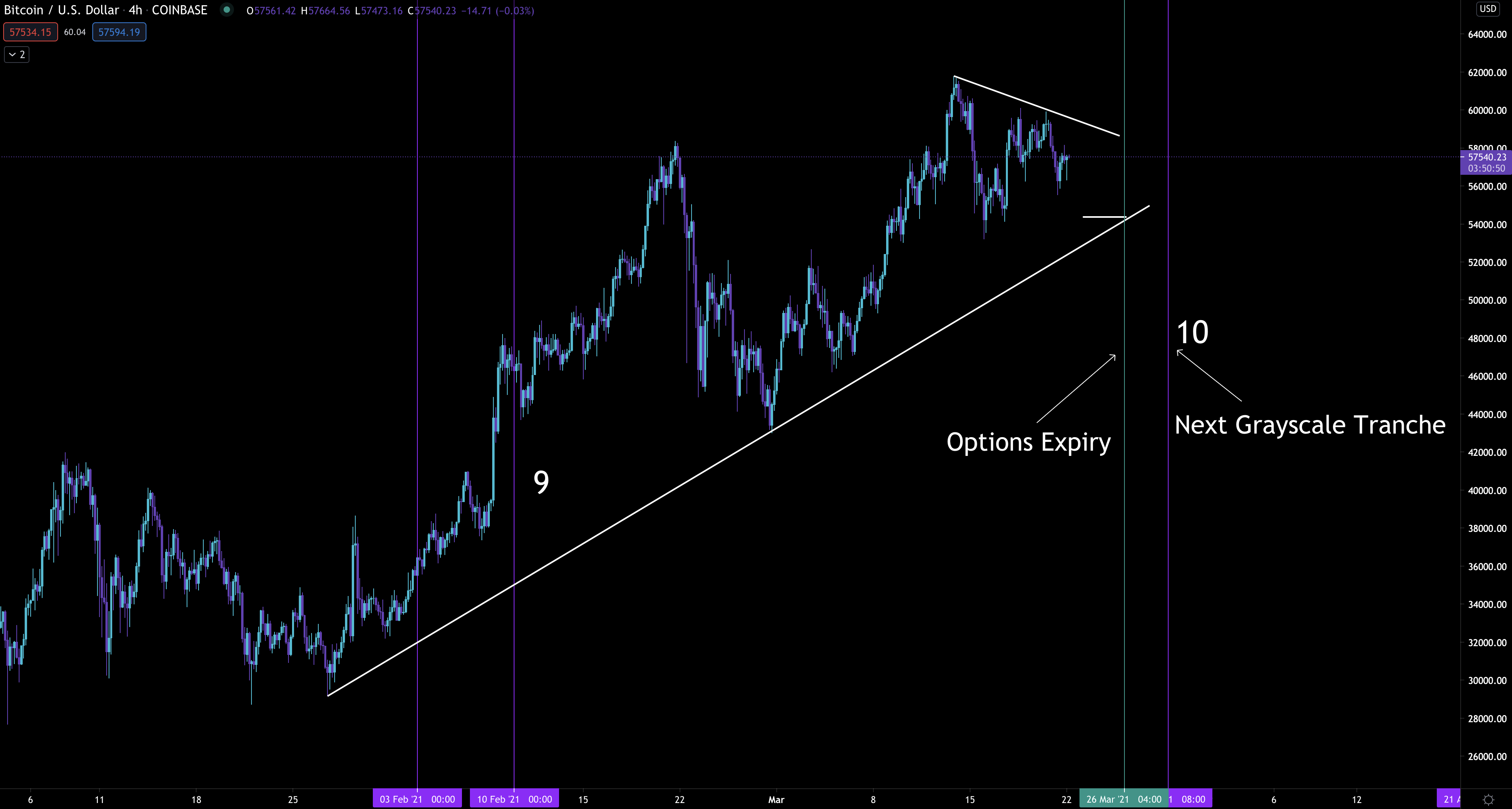 So here’s the chart I’m watching… on it you’ll see options expiry, next grayscale tranche, and some support line that might be relevant.