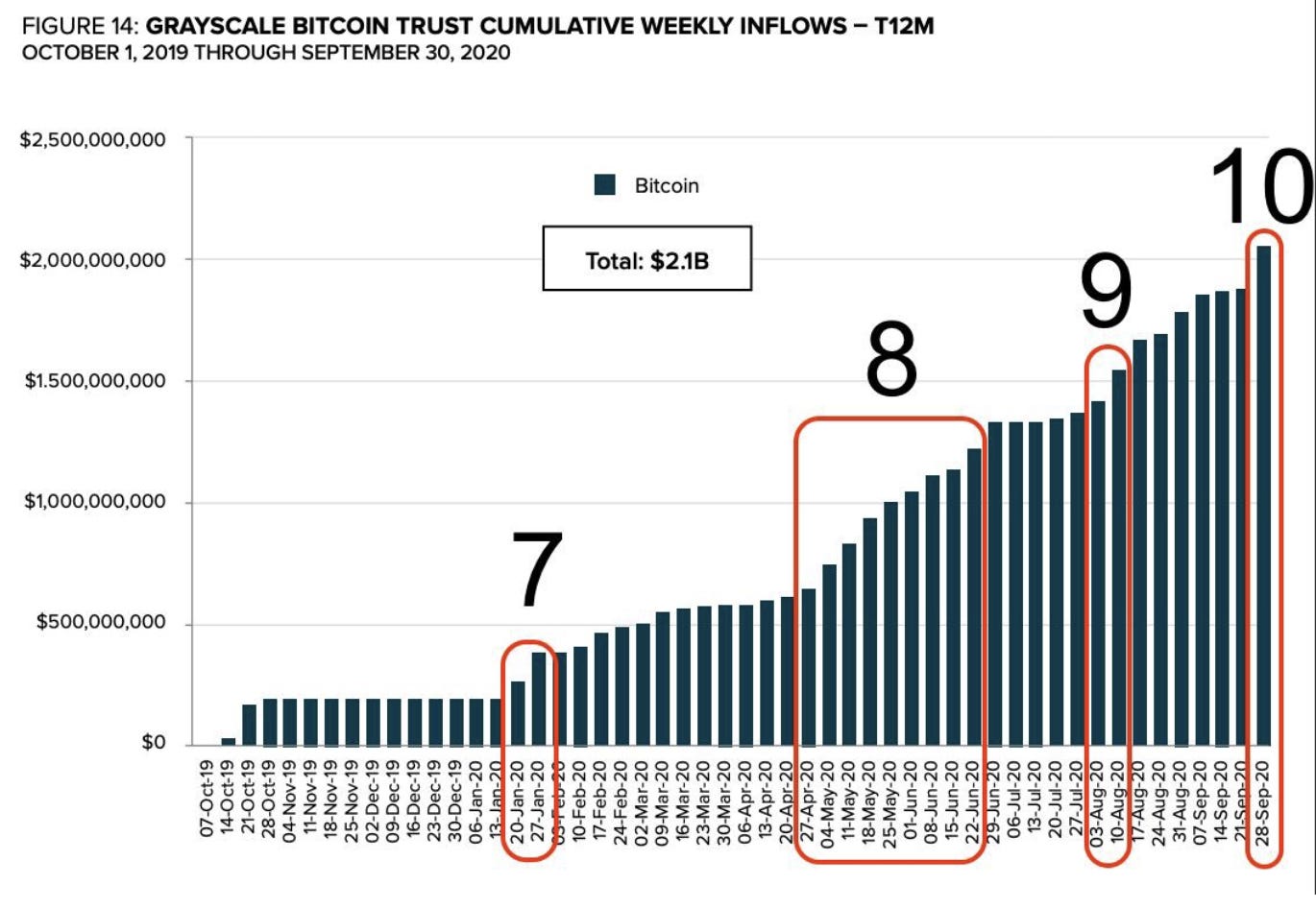 It references the Grayscale Effect, which essentially is major upticks in unlockings tend to create an upwards effect on spot prices.