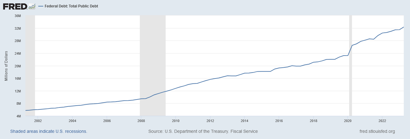 The United States government’s debt just crossed $33 trillion on September 18. It was $30 trillion in February 2022 – a 10% rise in seven months.