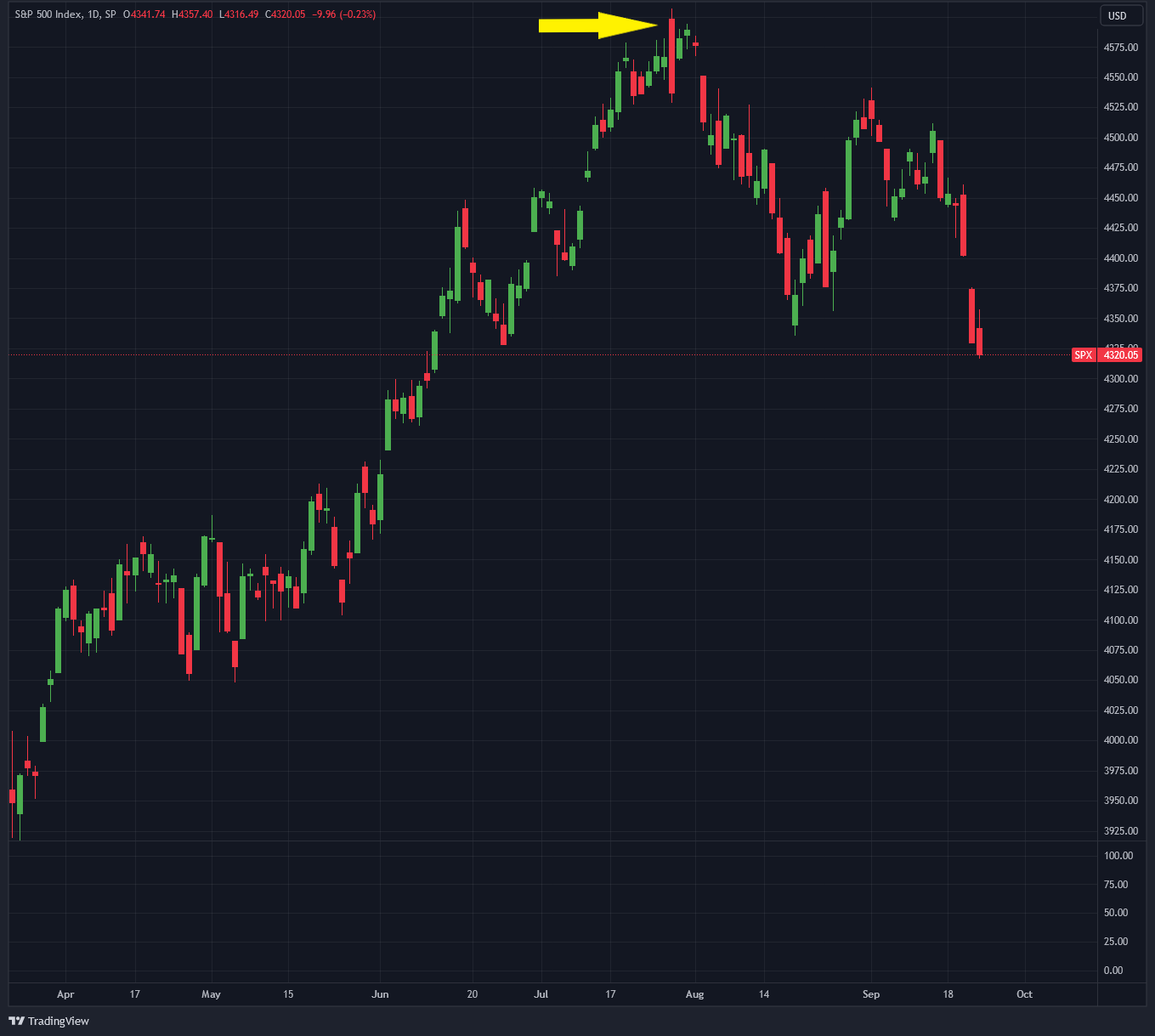As one can see, the S&P 500 dropped like an anchor that day. In fact, it was at the highest point of 2023 at 4607.07. Since the BoJ news came out, it has not recovered, with it currently trading around 4,330.