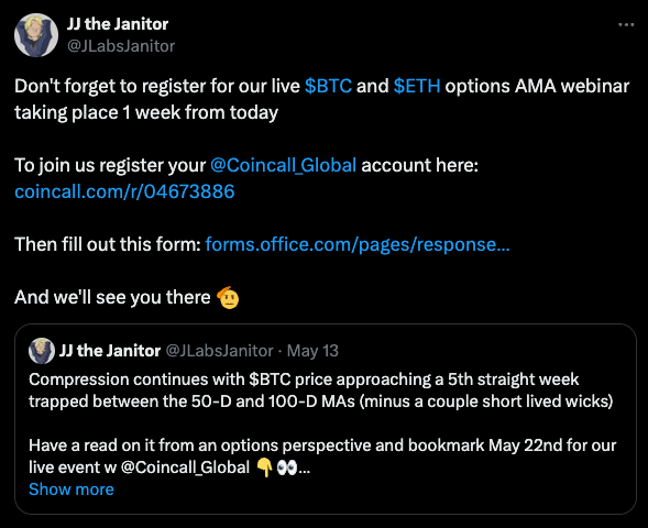 And as a reminder don’t forget to register for our live options AMA webinar taking place next Wednesday at 9:15 est (details and registration form in the tweet here / below). Bring your questions, you won’t want to miss this.