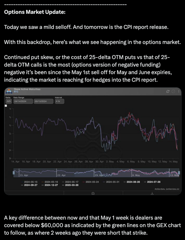 The set-up into the event was interesting as the market was hedging aggressively with out of the money puts and there was notable gamma fuel above $62,000 that tipped the markets hand and let us know if CPI was favorable, the upside expansion would come about rapidly.