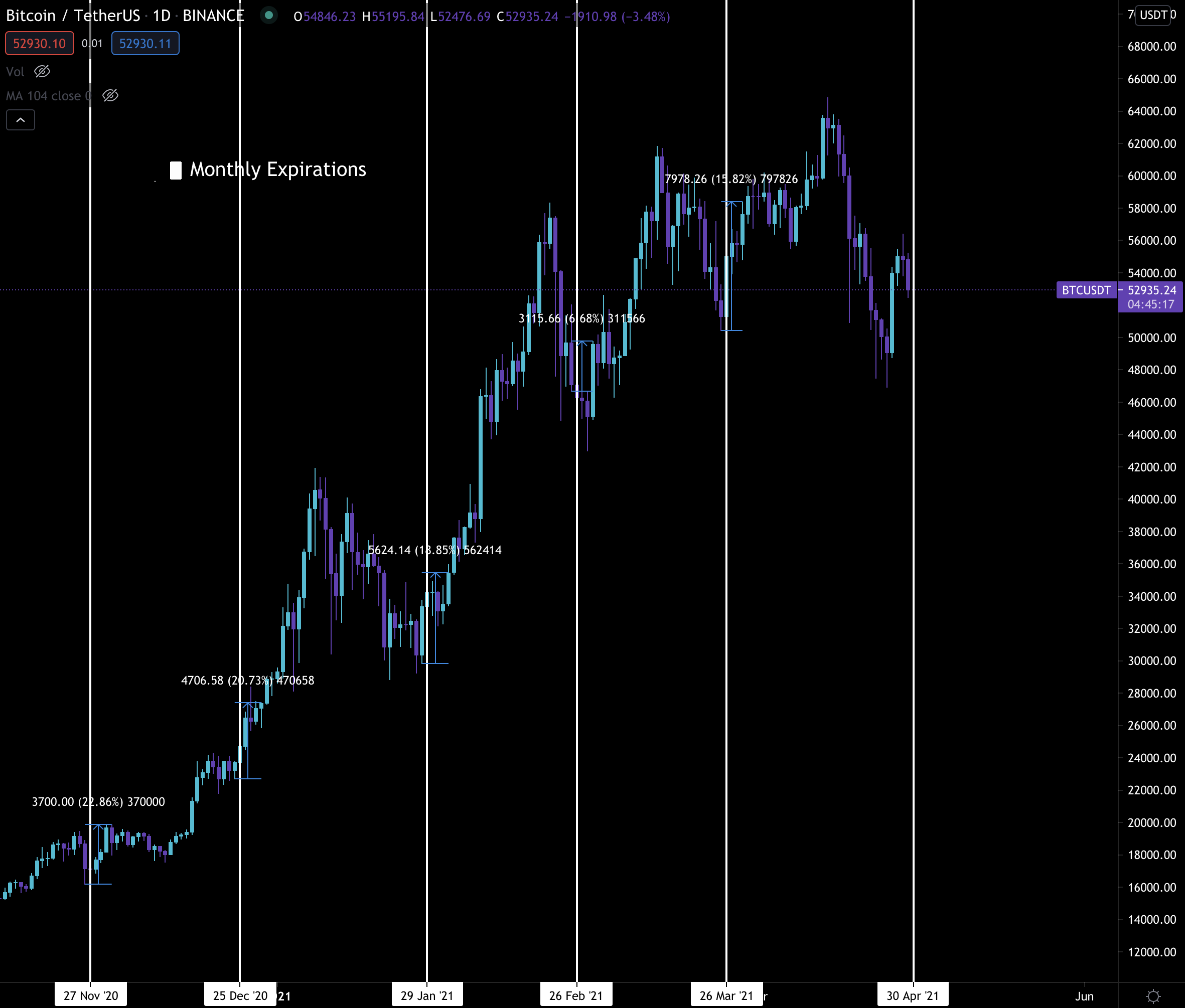Since we recently hit on the Grayscale Effect and how the next couple of months might create incredibly buying pressure if it holds, let’s look at the end of month options expiration.
