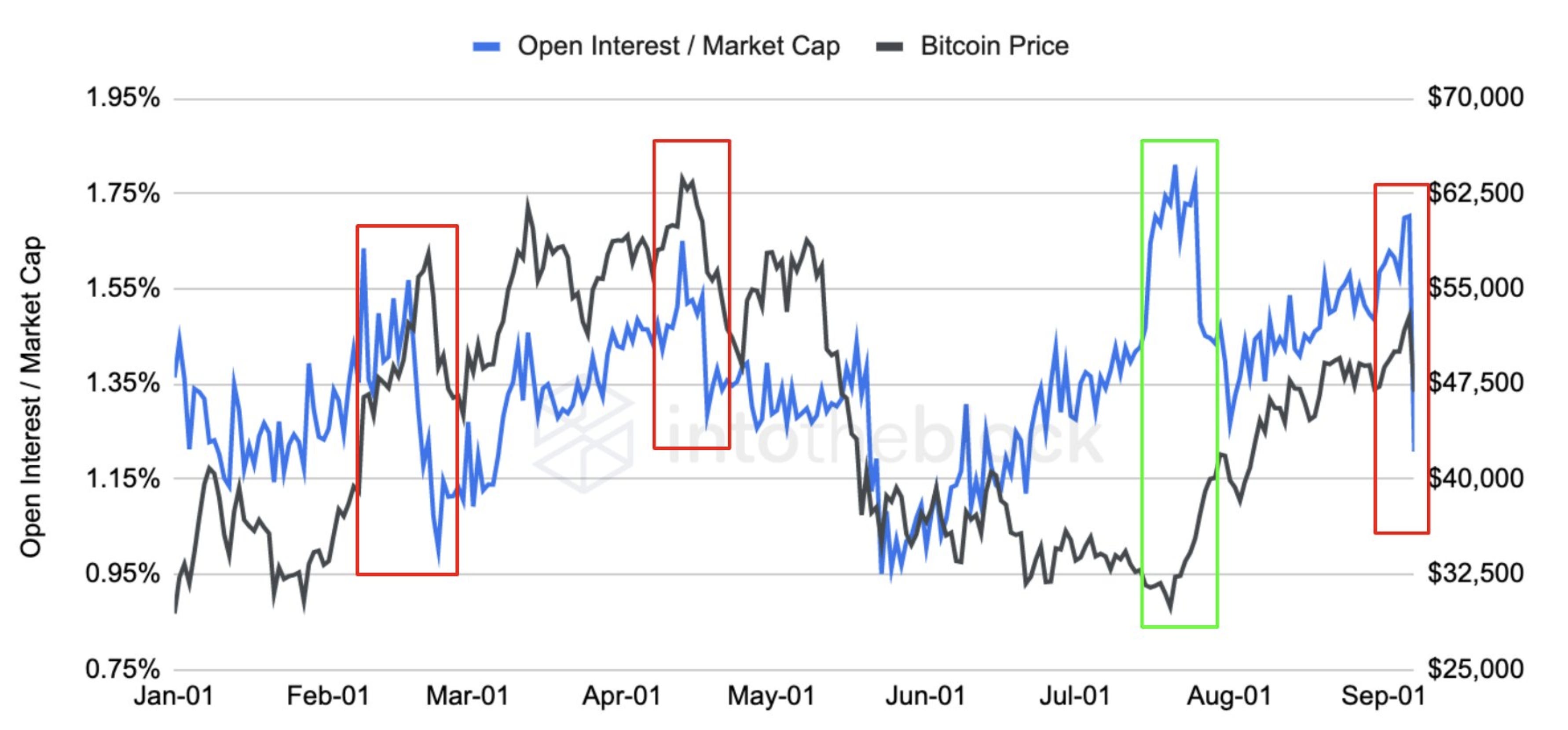 Sure, the ability for new open interest to impact the price of bitcoin was becoming muted. And thankfully the folks at InTheBlock turned my rough sketch into a more polished end product (whether it was actually because of me or not is unknown!).