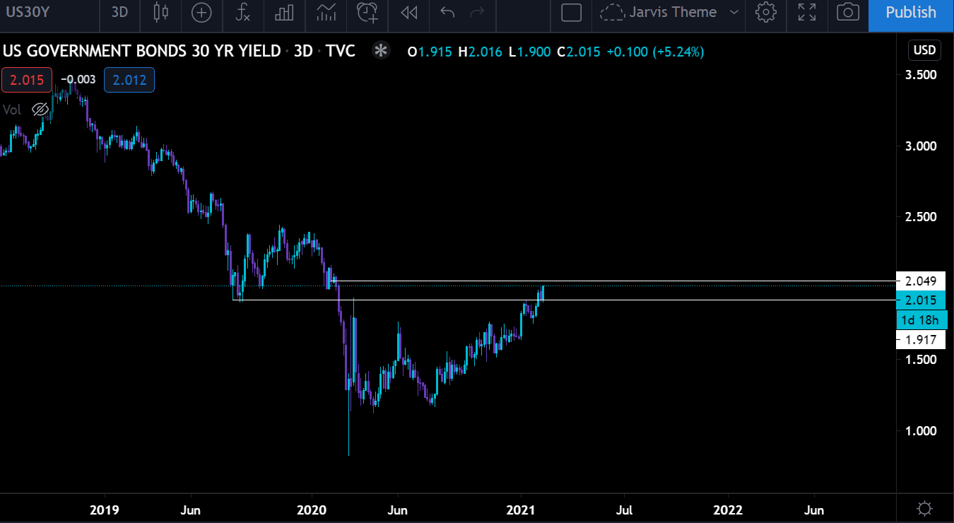 If we see yields run a bit towards 2.5% on a 30Yr bond, then we can expect some of the speculative investments to cool down a bit. I’d be curious to see how bitcoin responds.
