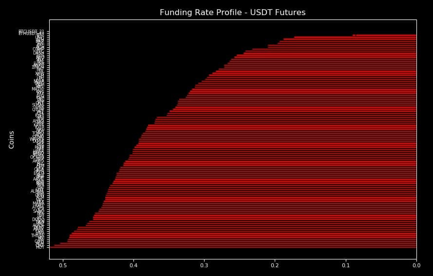This hybrid feature helps by warning us of potential cascading liquidation events. The higher it goes, the more likely it can happen… That’s because high funding combined with low profits or unrealized losses means lots of positions can close very fast.