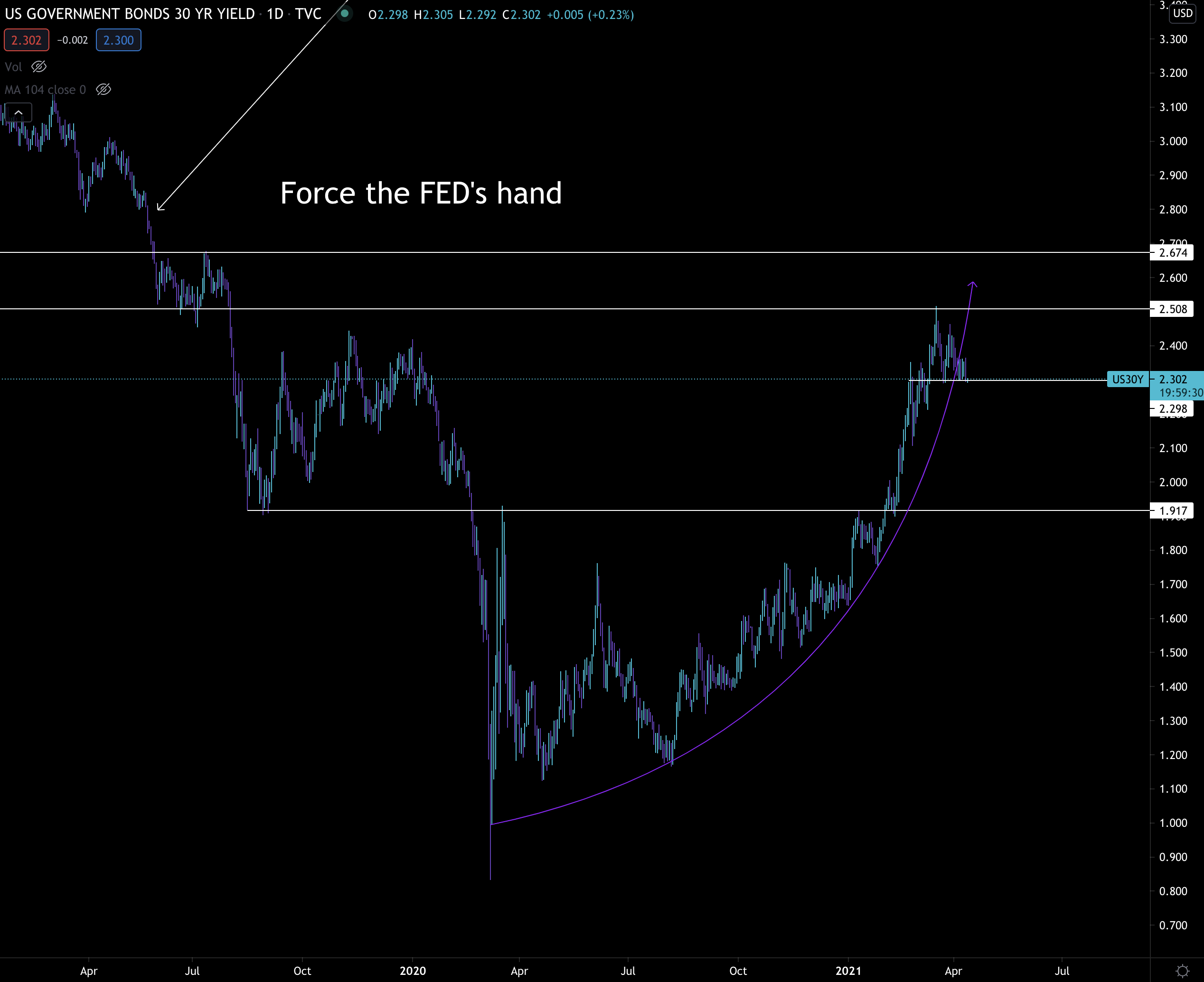 In prior issues we talked about how any moves above 2.5 and/or 2.67 might result in the FED being force to take action through yield curve control aka more QE through additional treasury purchases.