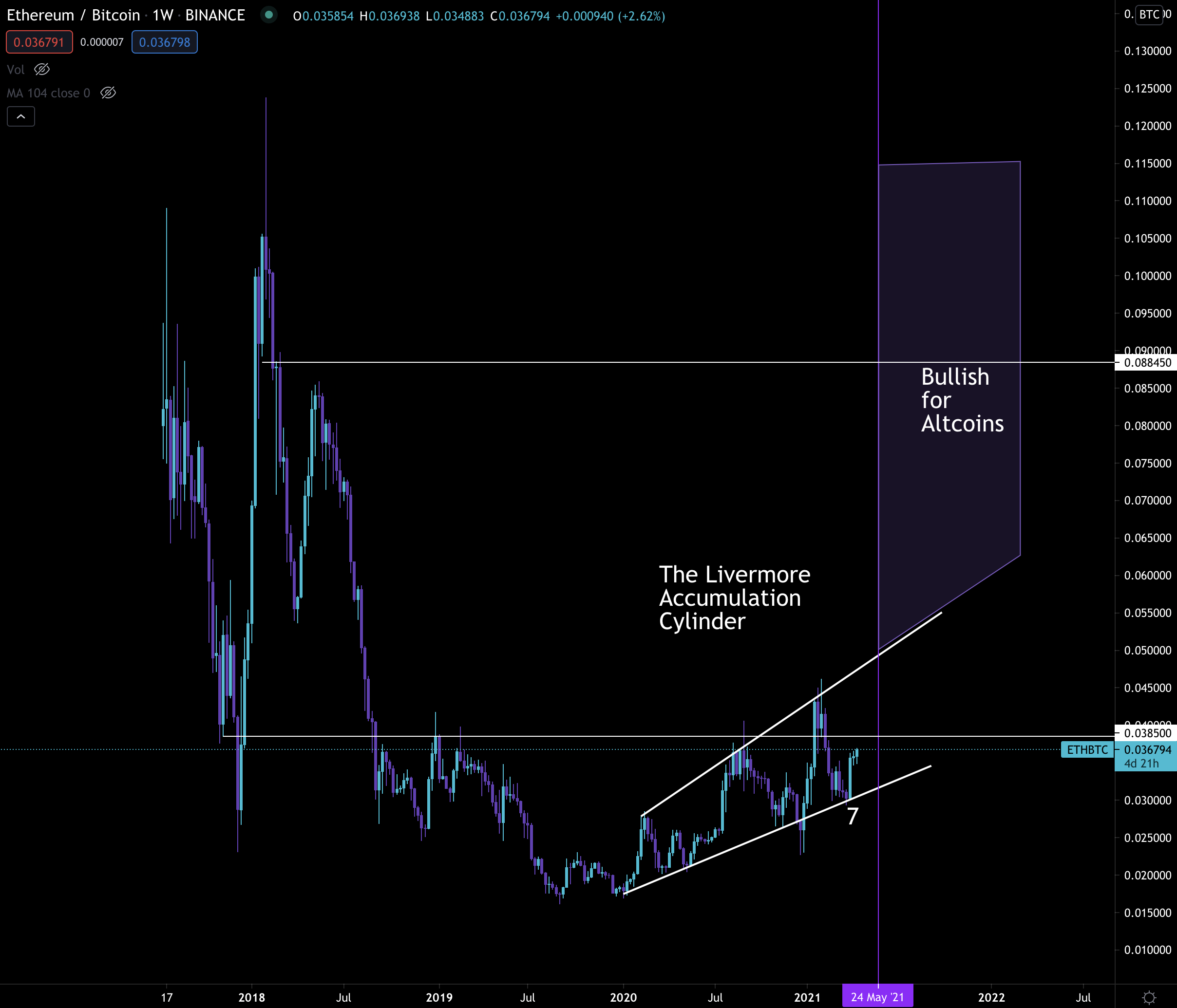 Note… a break above the cylinder will likely create a full blown altseason. Keep this chart in your back pocket.